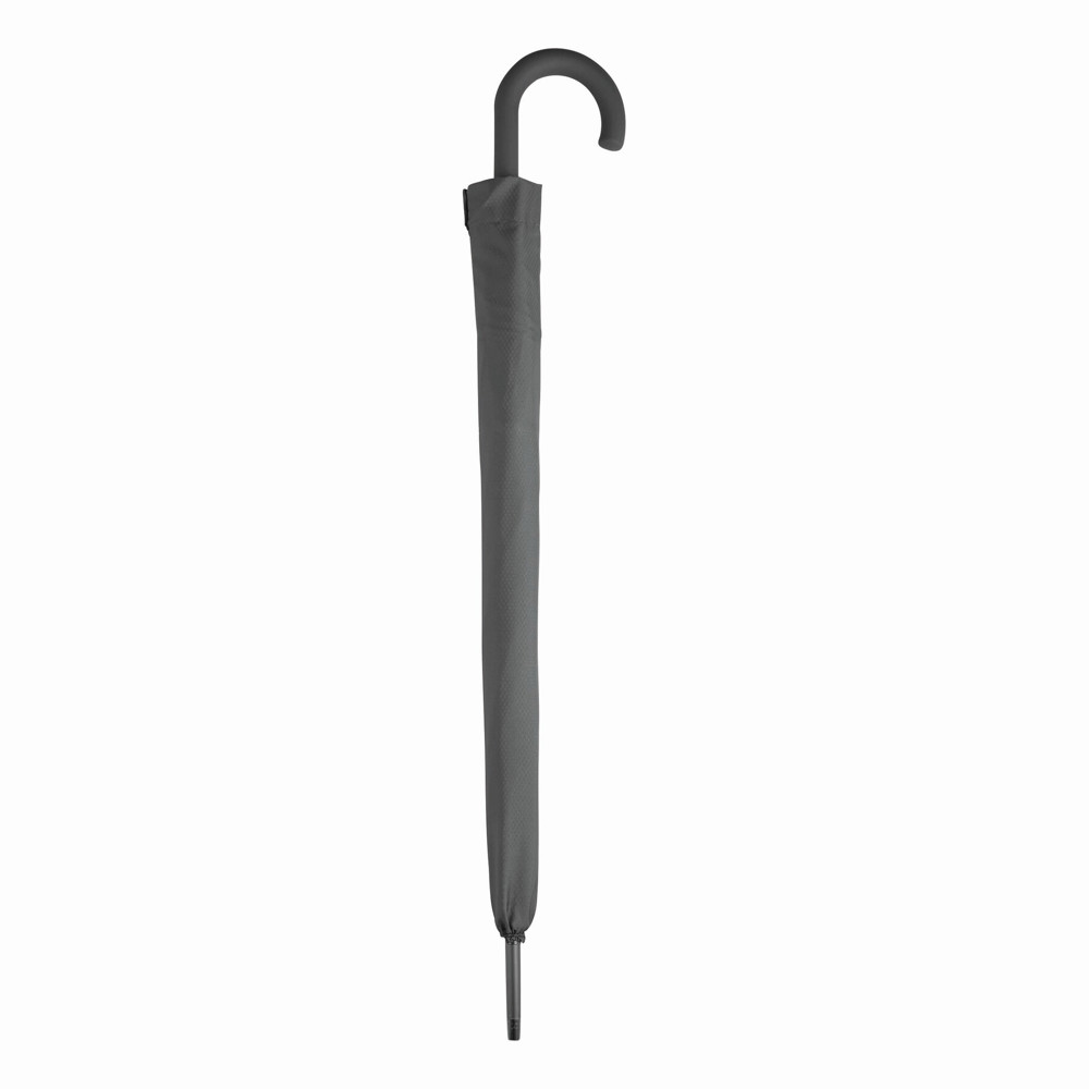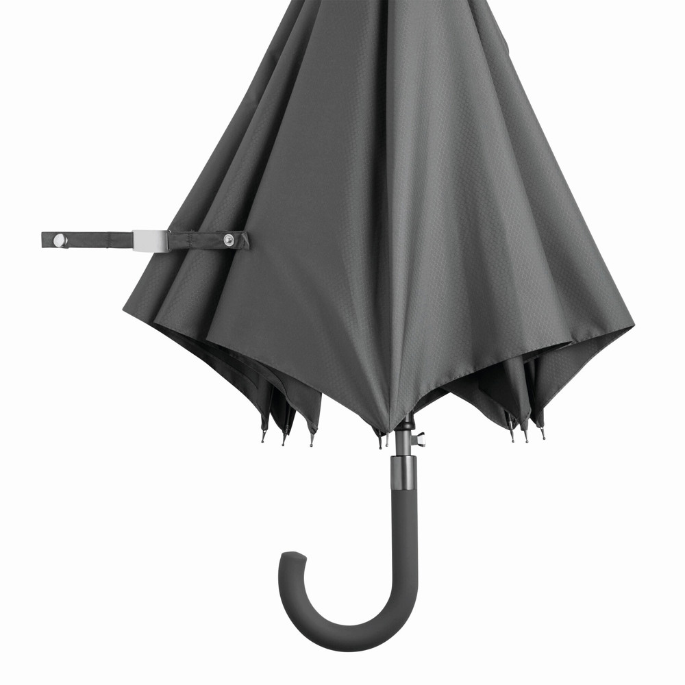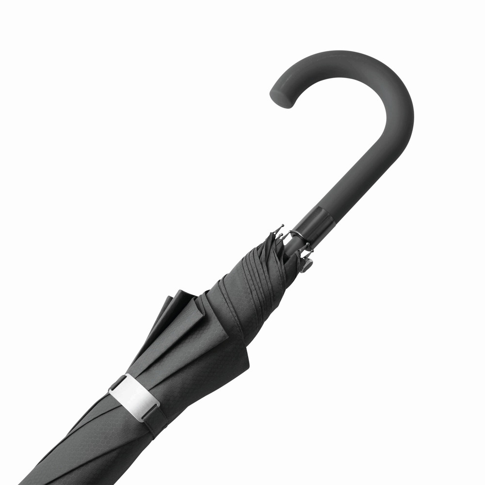 Automatischer Windproof-Stockschirm JUBILEE: Aluminiumstock, Fiberglasspeichen, Metalltips, gummierter und farblich abgestimmter Rundhakengriff, Polyester-Bespannung und -Hülle mit Wabenstruktur, Verschlussband mit Druckknopf und Metall-Platte zur Werbeanbringung