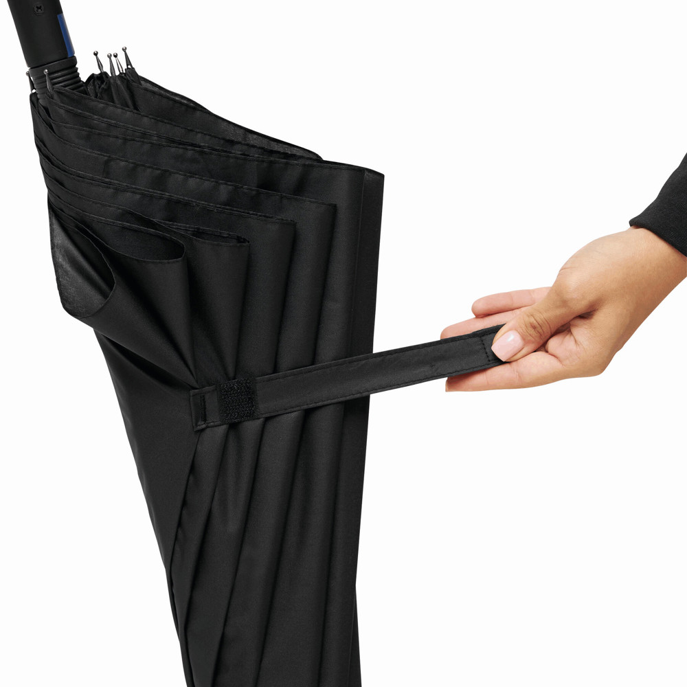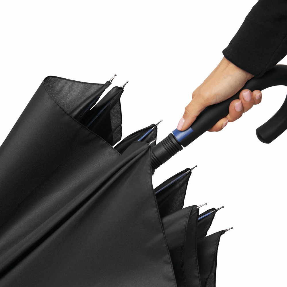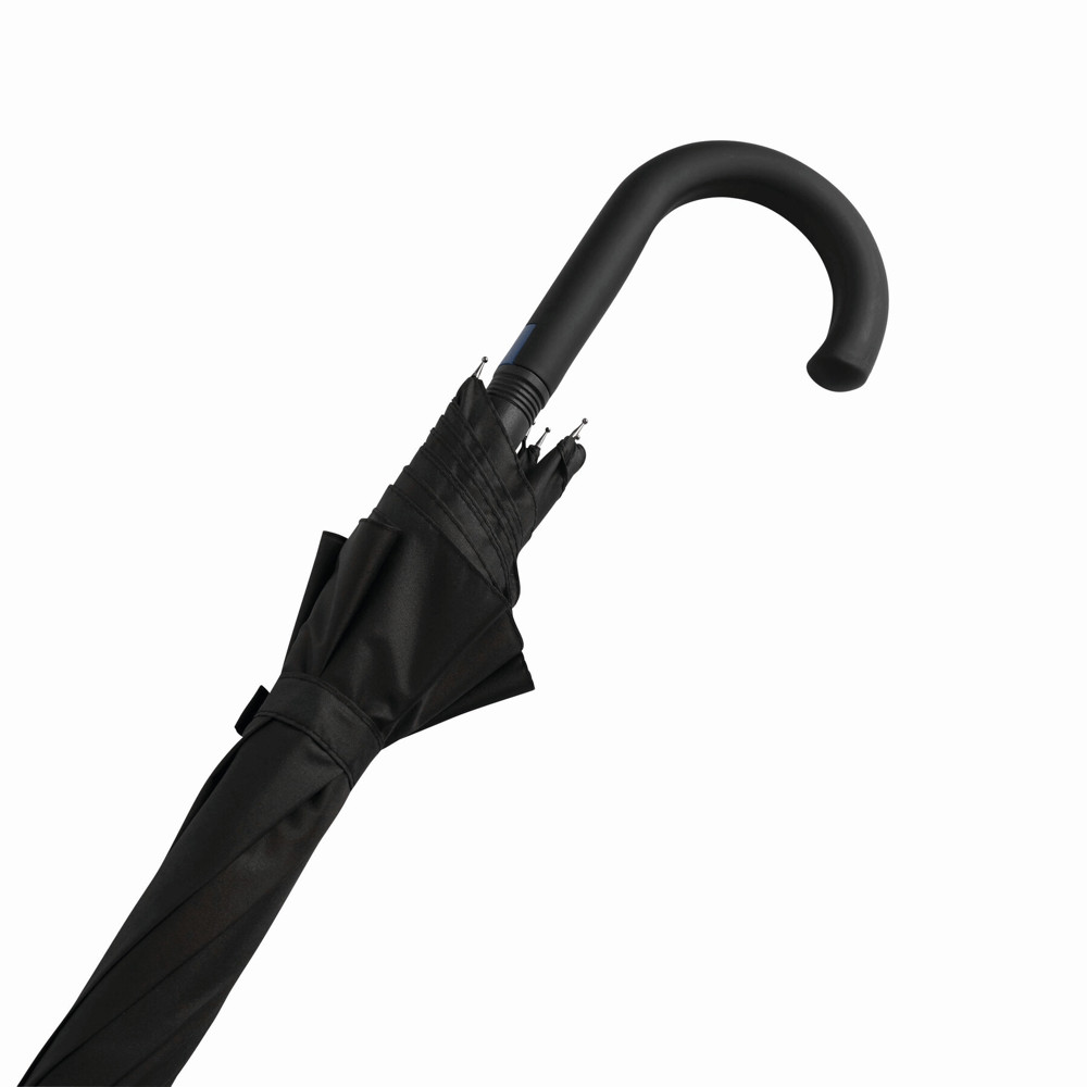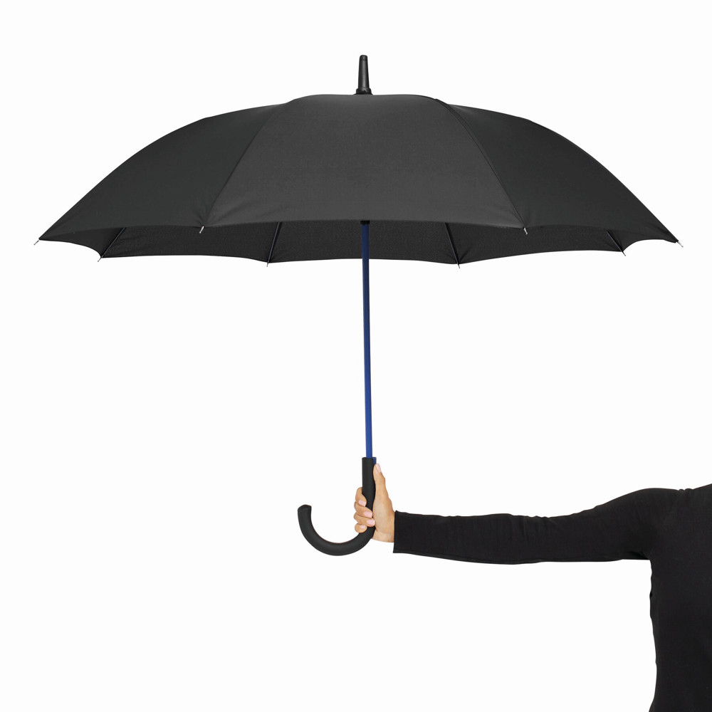 Automatik-Stockschirm CANCAN: Metallstock und Fiberglasspeichen farblich abgestimmt, mit Metalltips, gummierter Rundhakengriff mit farblich abgestimmter Automatik-Auslösetaste, Polyester-Pongee-Bespannung, Schließband mit Klettverschluss