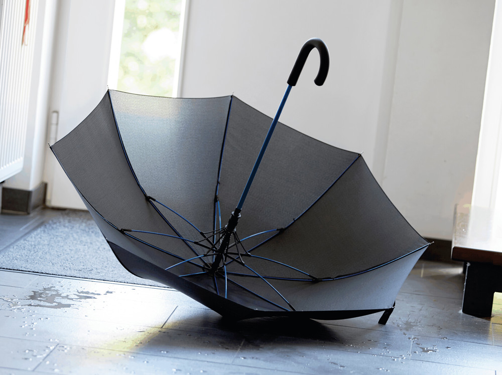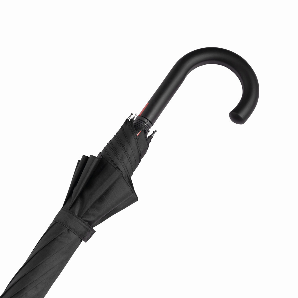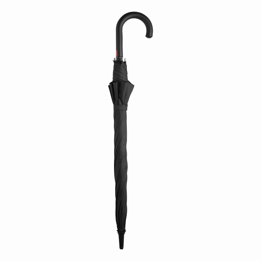 Automatik-Stockschirm CANCAN: Metallstock und Fiberglasspeichen farblich abgestimmt, mit Metalltips, gummierter Rundhakengriff mit farblich abgestimmter Automatik-Auslösetaste, Polyester-Pongee-Bespannung, Schließband mit Klettverschluss