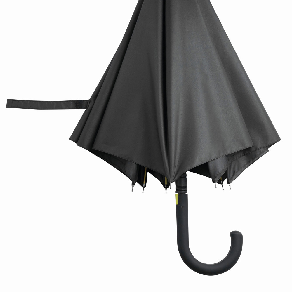 Automatik-Stockschirm CANCAN: Metallstock und Fiberglasspeichen farblich abgestimmt, mit Metalltips, gummierter Rundhakengriff mit farblich abgestimmter Automatik-Auslösetaste, Polyester-Pongee-Bespannung, Schließband mit Klettverschluss