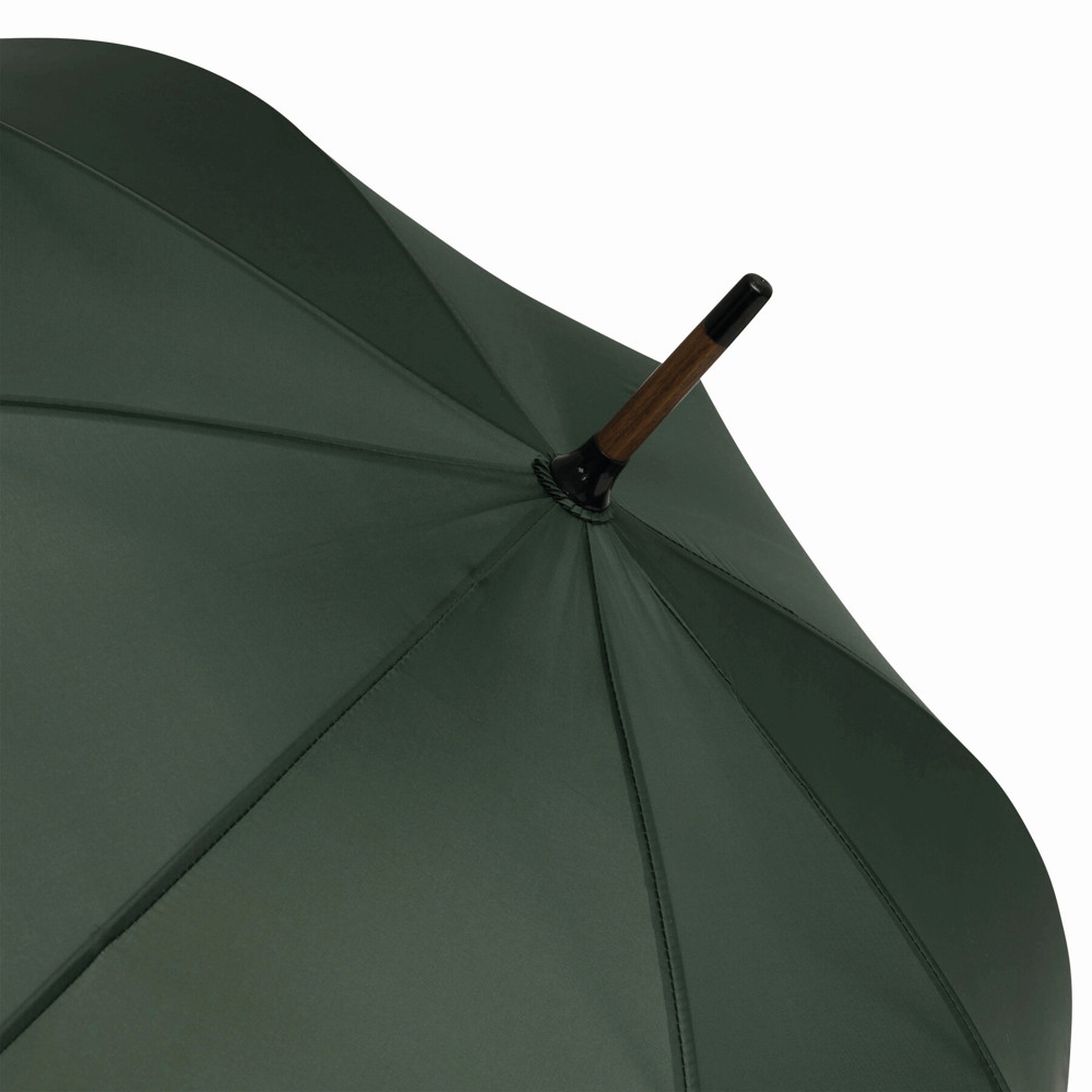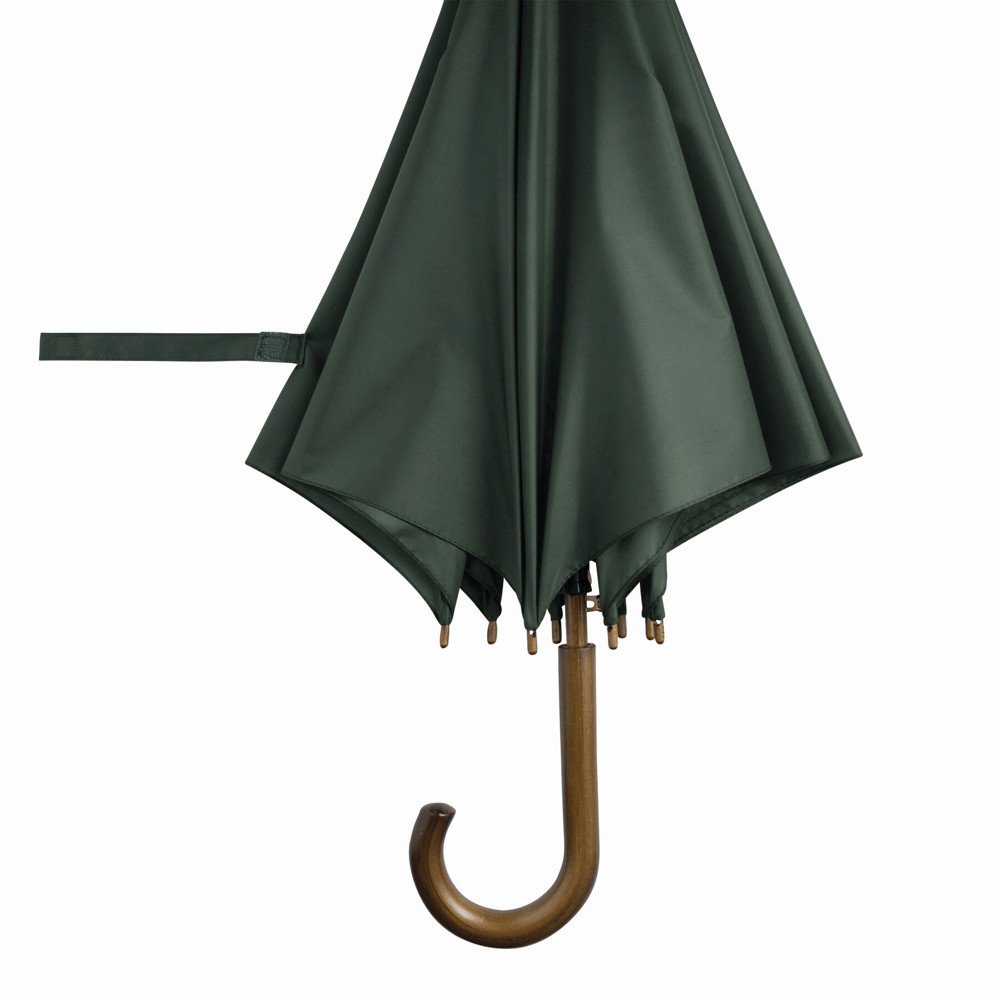 Automatik-Holzstockschirm BOOGIE: Metallspeichen, Holztips und -Rundhakengriff, Nylon-Bespannung, Schließband mit Klettverschluss