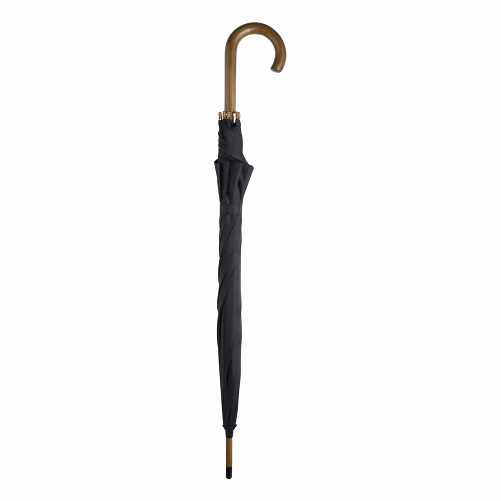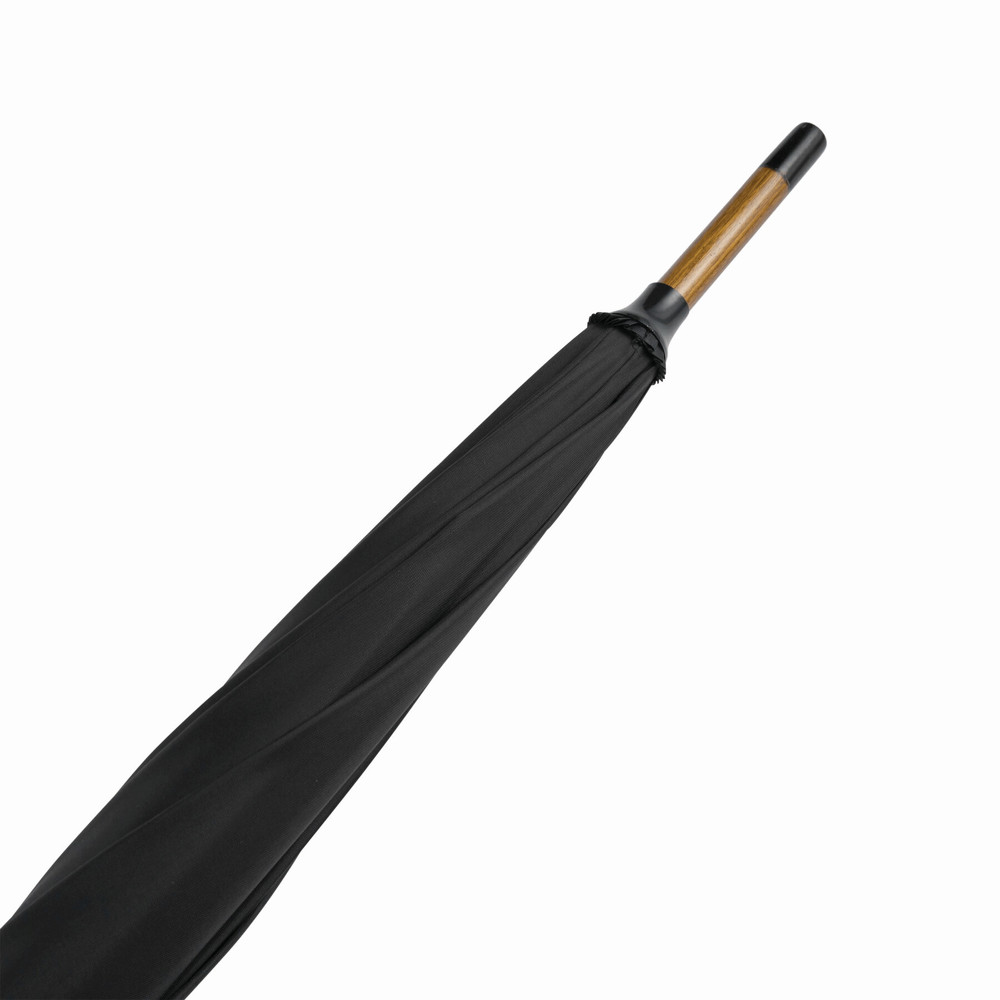 Automatik-Holzstockschirm BOOGIE: Metallspeichen, Holztips und -Rundhakengriff, Nylon-Bespannung, Schließband mit Klettverschluss