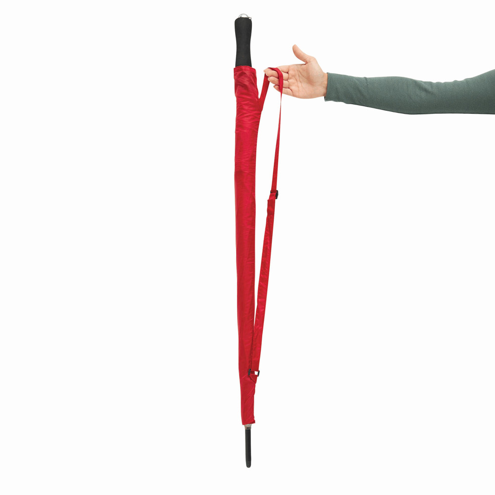Golfschirm mit Tragefutteral MOBILE: Metallstock, Doppelmetallspeichen mit Polyester-Bespannung und Kunststofftips, Moosgummigriff, Schließband mit Klettverschluss
