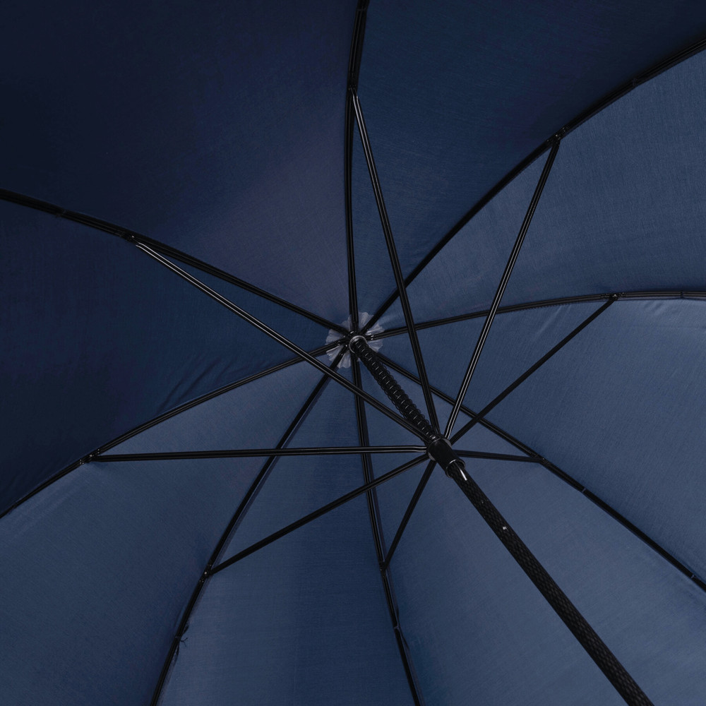Sturmschirm TORNADO: Fiberglasstock, Doppelmetallspeichen und Rückholautomatik-Feder, Kunststofftips, Moosgummigriff, Polyester-Bespannung, Schließband mit Klettverschluss