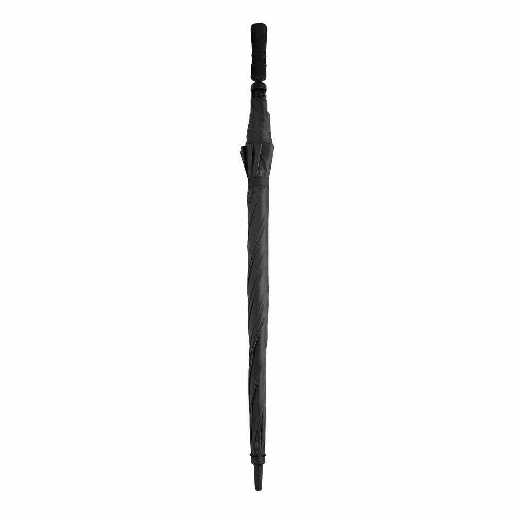 Sturmschirm TORNADO: Fiberglasstock, Doppelmetallspeichen und Rückholautomatik-Feder, Kunststofftips, Moosgummigriff, Polyester-Bespannung, Schließband mit Klettverschluss