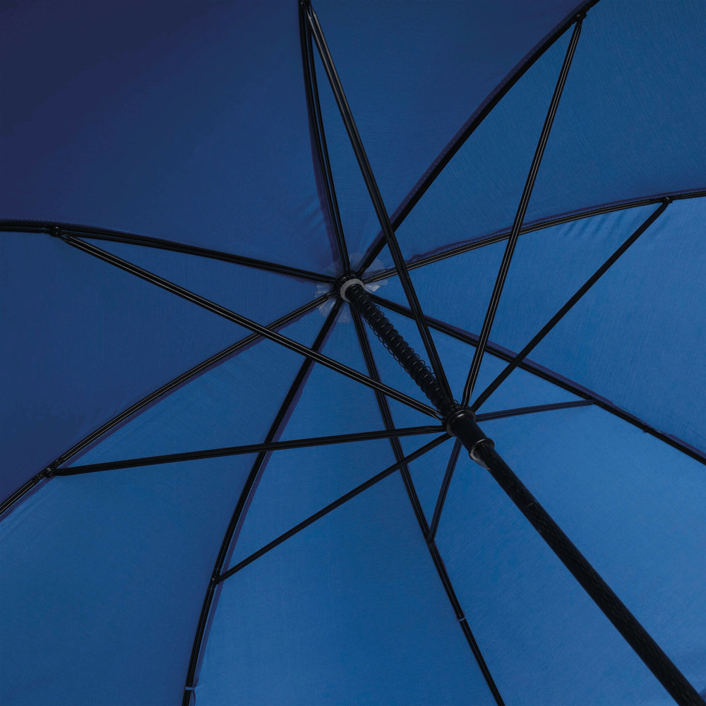 Sturmschirm TORNADO: Fiberglasstock, Doppelmetallspeichen und Rückholautomatik-Feder, Kunststofftips, Moosgummigriff, Polyester-Bespannung, Schließband mit Klettverschluss