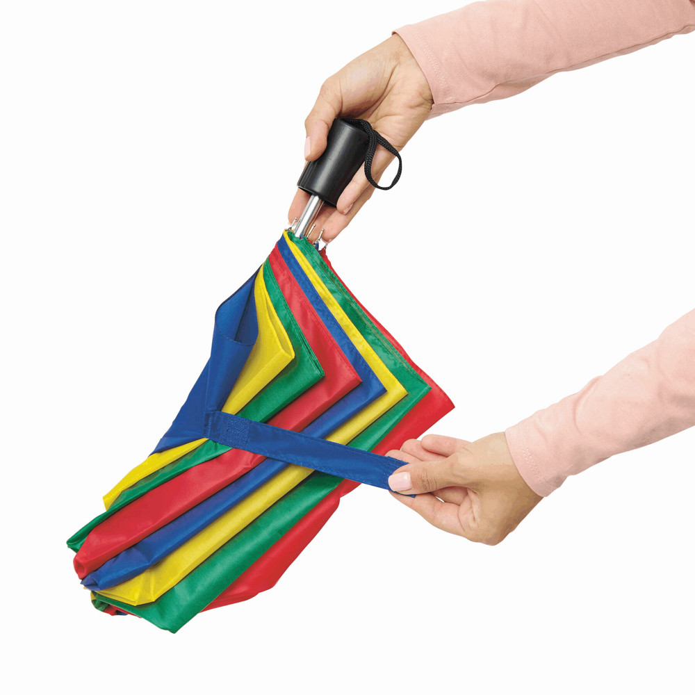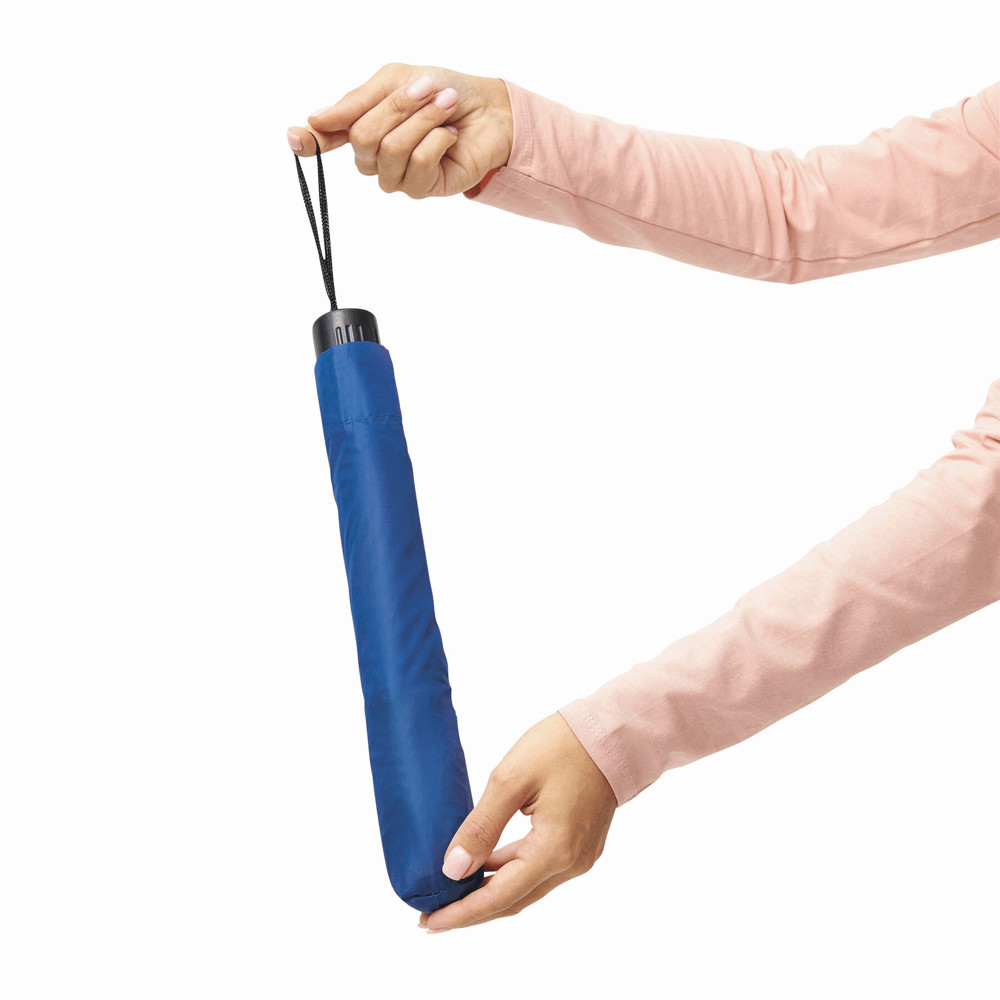 Taschenschirm REGULAR mit Handöffner, in farblich abgestimmtem Futteral: 2-teiliger Metallstock, Metallspeichen, Kunststoffgriff, Polyester-Bespannung, Schließband mit Klettverschluss
