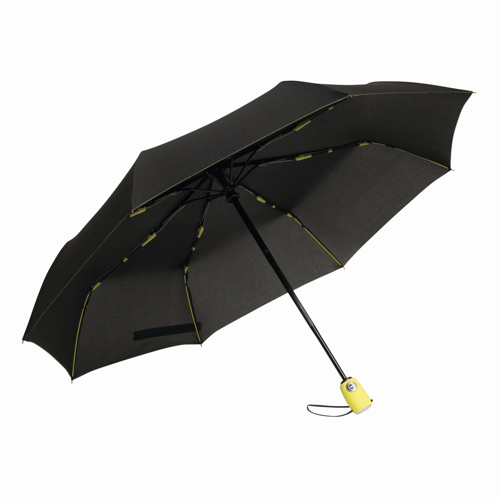 Vollautomatischer Windproof-Taschenschirm STREETLIFE: Nähte farblich angepasst an den Griff, 3-teiliger Metallstock, mit Fiberglasspeichen, Metalltips, gummierter Griff mit Handschlaufe, Polyester-Pongee-Bespannung, Schließband mit Klettverschluss, Hülle mit farblich abgestimmten Nähten und Klettverschluss