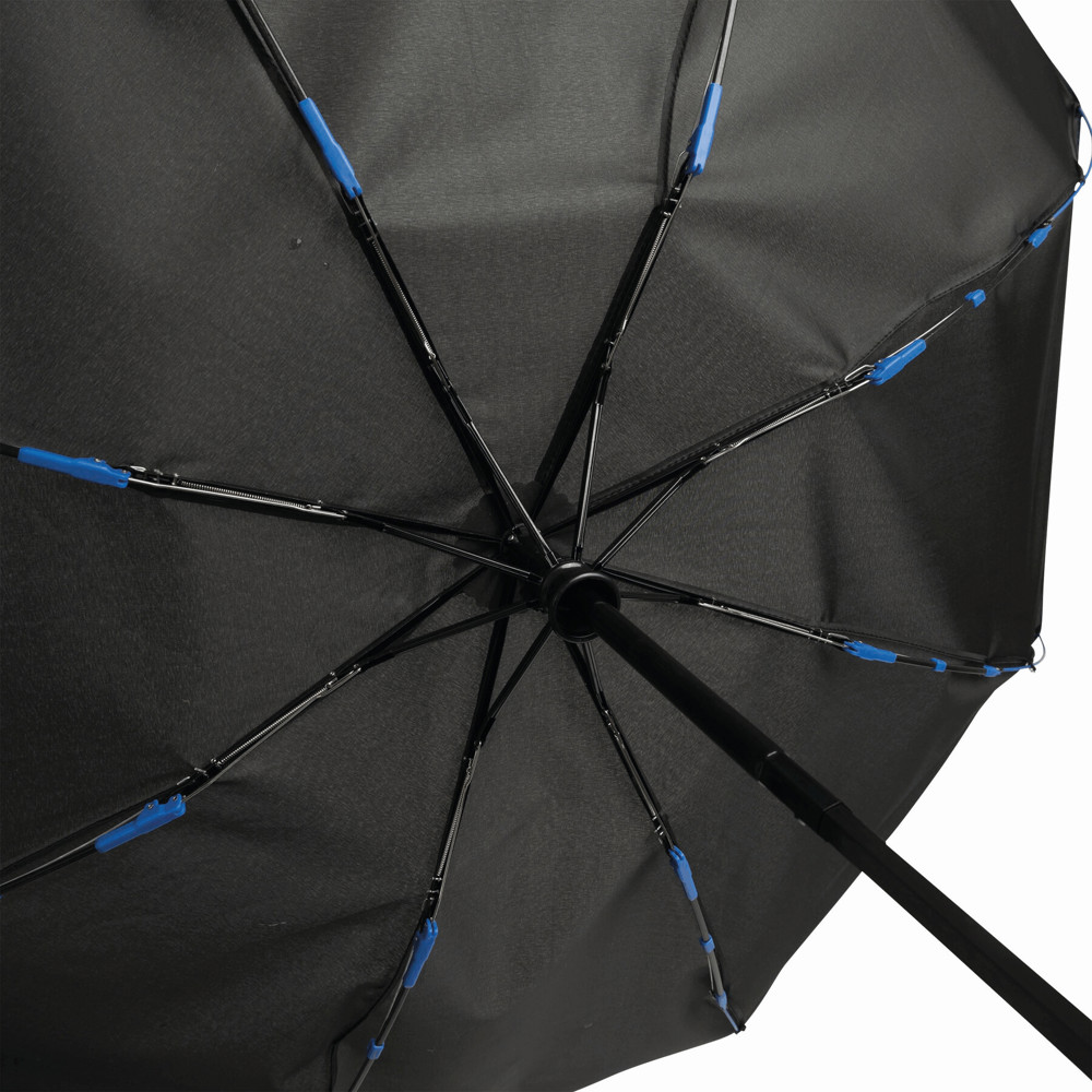 Vollautomatischer Windproof-Taschenschirm STREETLIFE: Nähte farblich angepasst an den Griff, 3-teiliger Metallstock, mit Fiberglasspeichen, Metalltips, gummierter Griff mit Handschlaufe, Polyester-Pongee-Bespannung, Schließband mit Klettverschluss, Hülle mit farblich abgestimmten Nähten und Klettverschluss