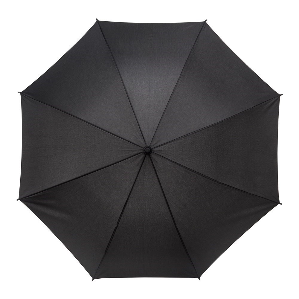 GA-318 Falcone® luxuriöser Regenschirm, Windsicher, 12 mm Stock schwarz, Glasfiberschienen, Polyester Bezug, Lederoptik Schwarzer RH-Griff.