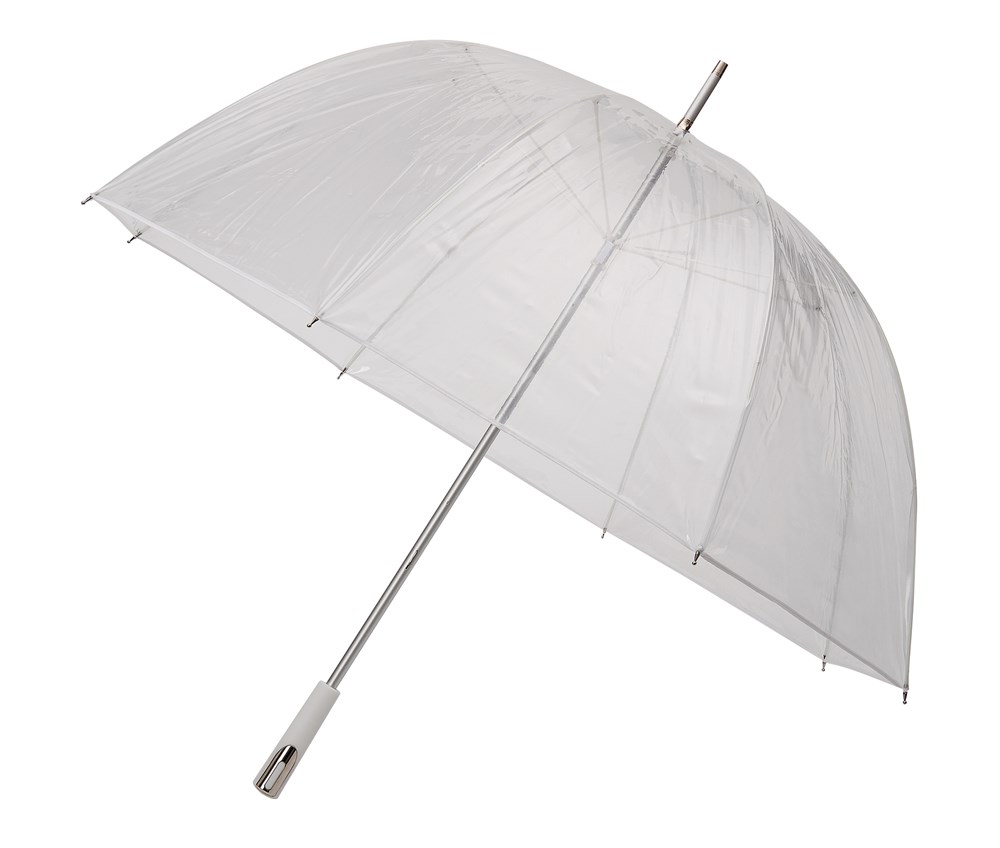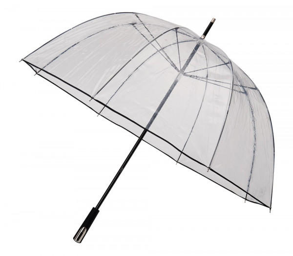 RD-2 Falcone® Kuppel-Stockschirm, durchsichtig weiß PVC, 14 mm Aluminiumstock, farblich passend, Griff, gummiert und Einfassband, farblich passend.