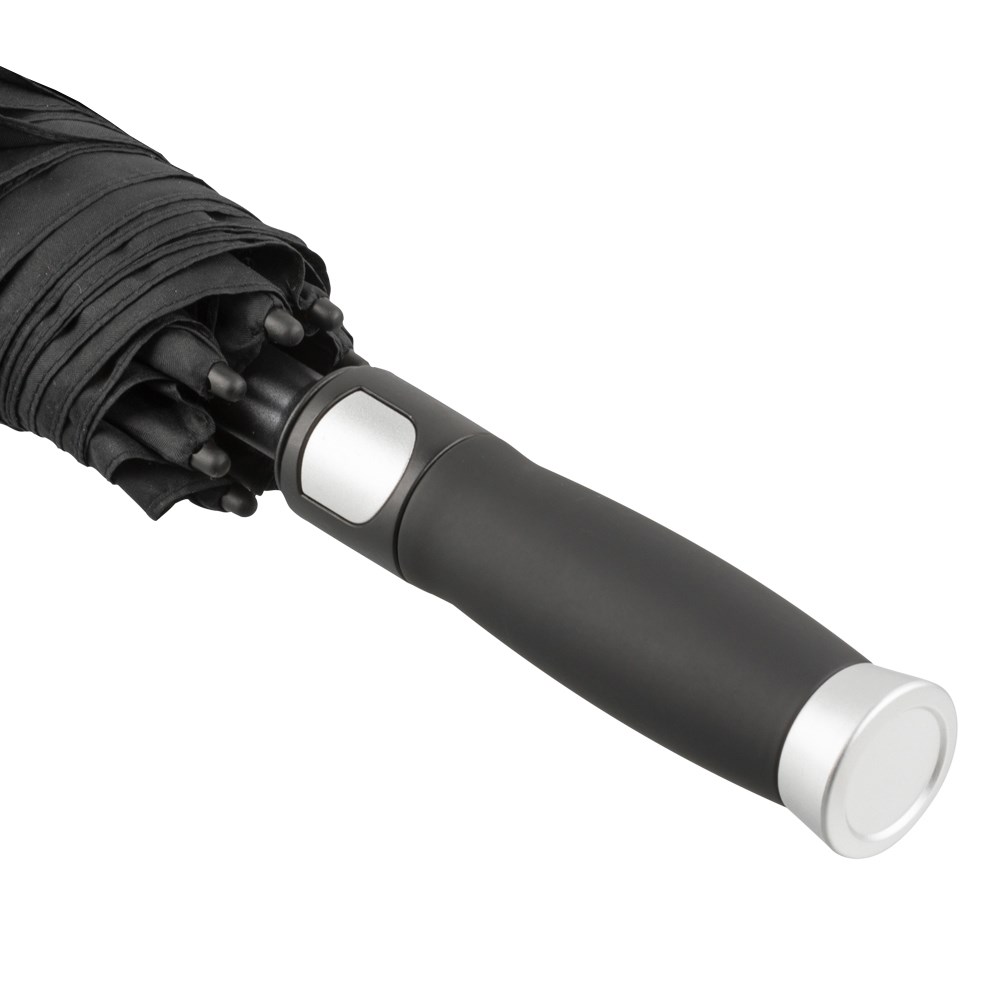 Golfschirm ARTOS - OKTAGON® - MIDsize - Automatik - Windproof-System Praktische Automatik zum leichten Öffnen - schwarzes, flexibles Fiberglasgestell mit reversiblen Fiberglasspeichen für eine hohe Belastbarkeit und Flexibilität bei stärkerem Wind - stabiler 14mm Fiberglasstock - schwarz/silberfarbener, gerader, 'soft-touch' Kunststoffgriff mit integrierter Automatik-Auslösetaste in silberfaben - schwarze Kunststoffstockkappe mit 'anti-slide' Gummi-Spitze - schwarze Kunststoffspeichentips - Polyester-Pongee-Bespannung mit schmutz- und wasserabweisender Hydrophob-Ausrüstung - komfortables Klettverschlussband - Speichenlänge ca. 70cm - Durchmesser ca. 120cm - Länge ca. 93cm - Gewicht ca. 590g