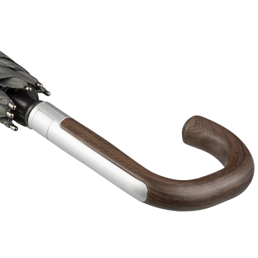 Golfschirm FENRIS - OKTAGON® - MIDsize - Automatik - Windproof-System Praktische Automatik zum leichten Öffnen - schwarzes, flexibles Fiberglasgestell mit reversiblen Fiberglasspeichen für eine hohe Belastbarkeit und Flexibilität bei stärkerem Wind - stabiler 14mm Aluminiumstock - exklusiver, gebogener Ergonomie-Rundhaken-Griff in Holz-Optik / aluminiumfarben - mit integrierter Automatik-Auslösetaste, Kunststoff-Kappe mit 'anti-slide' Gummi-Spitze in schwarz, 'gunmetal'-farbene Speichentips,- Polyester-Pongee-Bespannung mit schmutz- und wasserabweisender Hydrophob-Ausrüstung - komfortables Klettverschlussband - Speichenlänge ca. 70cm - Durchmesser ca. 120cm - Länge ca. 93cm - Gewicht ca. 565g