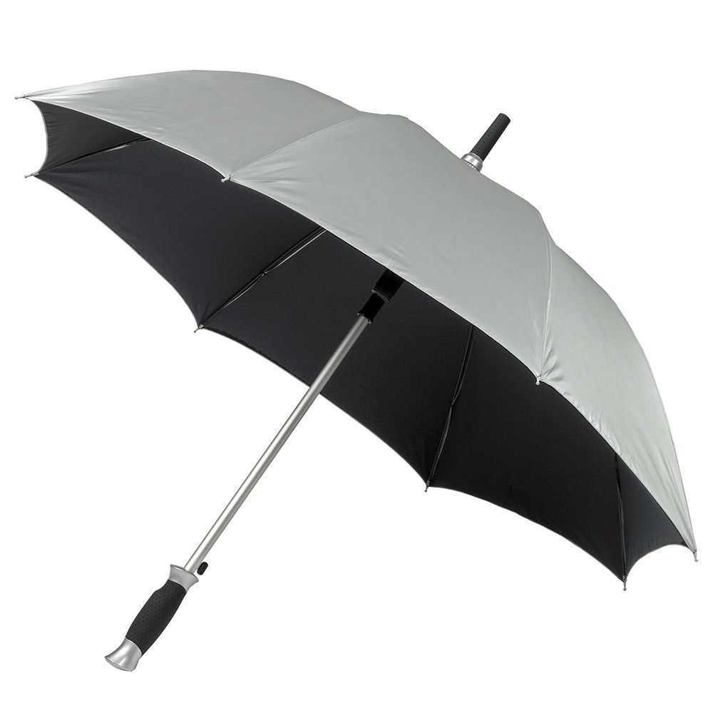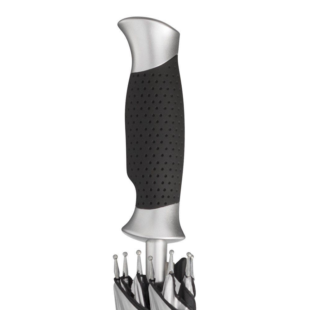 Stockschirm URANUS - OKTAGON® - REGULARsize - Automatik - Windproof-System Praktische Automatik zum leichten Öffnen - schwarzes, flexibles Fiberglasgestell mit reversiblen Fiberglasspeichen für eine hohe Belastbarkeit und Flexibilität bei stärkerem Wind - stabiler 14mm Aluminiumstock - exklusiver, gerader Ergonomie-Griff - Material-Mix - schwarz profiliert mit aluminium-farbenen Abschlüssen, mit angepasster Stockspitze, aluminium-farbene Speichentips - Polyester-Pongee-Bespannung mit schmutz- und wasserabweisender Hydrophob-Ausrüstung - komfortables Klettverschlussband - Speichenlänge ca. 60cm - Durchmesser ca. 105cm - Länge ca. 83cm - Gewicht ca. 475g