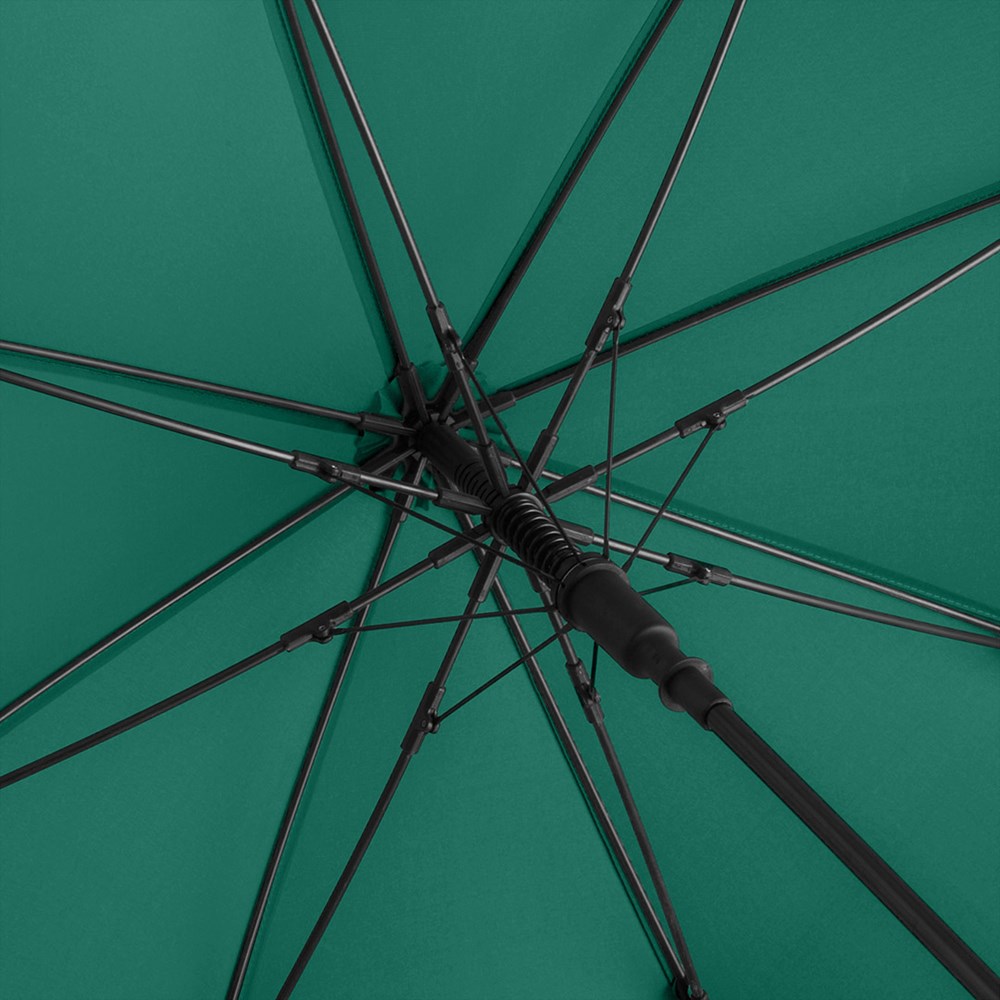 Ansprechender Automatik-Stockschirm in konsequent einheitlicher Farbgebung Komfortable Automatik-Funktion zum schnellen Öffnen, hochwertiges Windproof-PLUS-System für eine maximale Gestell-Flexibilität bei stärkeren Windböen, flexible Fiberglasschienen, stabiler Stahlstock, Soft-Touch-Griff und -Top farblich auf den Bezug abgestimmt, Griff mit integrierter Auslösetaste und Werbeanbringungsmöglichkeit, höherer Korrosionsschutz durch schwarze Galvanisierung des Stahlstocks