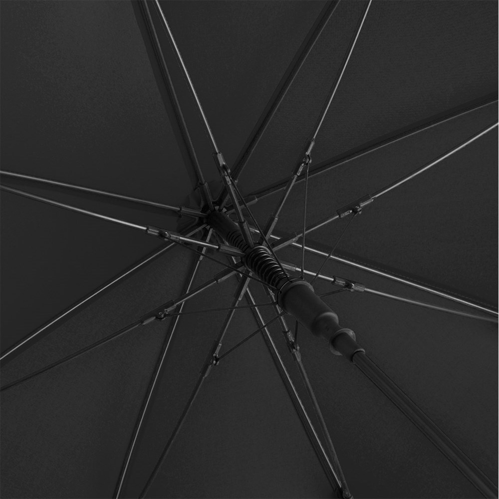 Ansprechender Automatik-Stockschirm in konsequent einheitlicher Farbgebung Komfortable Automatik-Funktion zum schnellen Öffnen, hochwertiges Windproof-PLUS-System für eine maximale Gestell-Flexibilität bei stärkeren Windböen, flexible Fiberglasschienen, stabiler Stahlstock, Soft-Touch-Griff und -Top farblich auf den Bezug abgestimmt, Griff mit integrierter Auslösetaste und Werbeanbringungsmöglichkeit, höherer Korrosionsschutz durch schwarze Galvanisierung des Stahlstocks