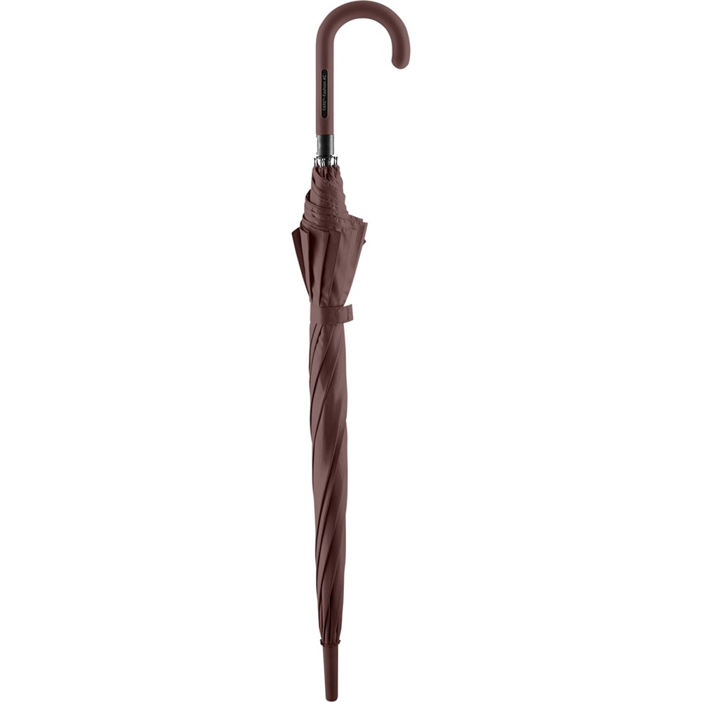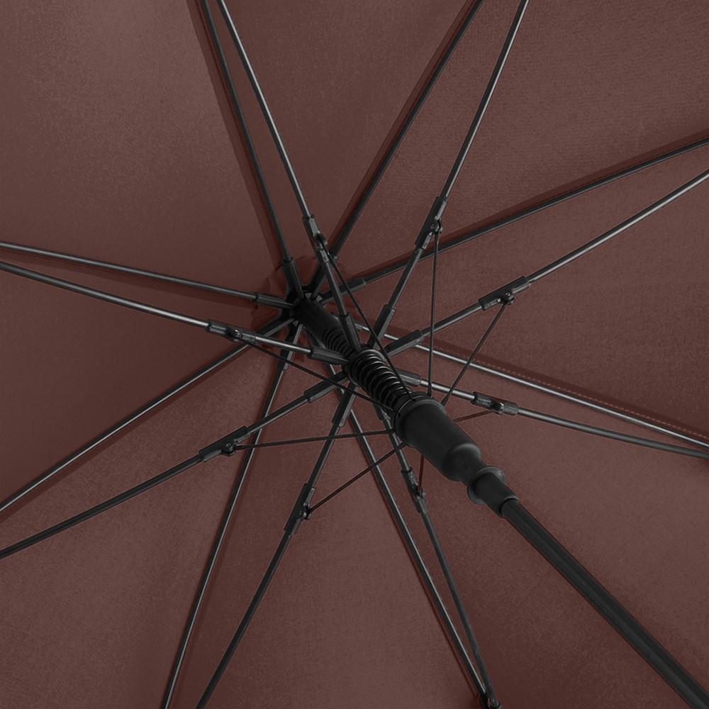 Ansprechender Automatik-Stockschirm in konsequent einheitlicher Farbgebung Komfortable Automatik-Funktion zum schnellen Öffnen, hochwertiges Windproof-PLUS-System für eine maximale Gestell-Flexibilität bei stärkeren Windböen, flexible Fiberglasschienen, stabiler Stahlstock, Soft-Touch-Griff und -Top farblich auf den Bezug abgestimmt, Griff mit integrierter Auslösetaste und Werbeanbringungsmöglichkeit, höherer Korrosionsschutz durch schwarze Galvanisierung des Stahlstocks