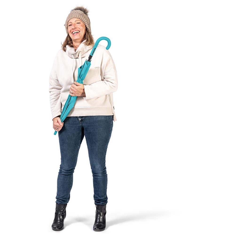 Ansprechender Automatik-Stockschirm in konsequent einheitlicher Farbgebung Komfortable Automatik-Funktion zum schnellen Öffnen, hochwertiges Windproof-PLUS-System für eine maximale Gestell-Flexibilität bei stärkeren Windböen, flexible Fiberglasschienen, stabiler Stahlstock, Soft-Touch-Griff und -Top farblich auf den Bezug abgestimmt, Griff mit integrierter Auslösetaste und Werbeanbringungsmöglichkeit, höherer Korrosionsschutz durch schwarze Galvanisierung des Stahlstocks