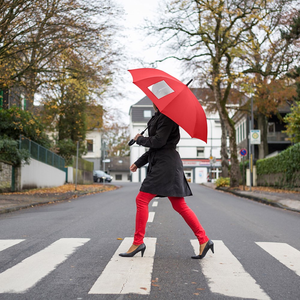 Besonderer Automatik-Stockschirm mit transparentem Sichtfenster Komfortable Automatik-Funktion zum schnellen Öffnen, hochwertiges Windproof-PLUS-System für eine maximale Gestell-Flexibilität bei stärkeren Windböen, flexible Fiberglasschienen, stabiler Stahlstock, Soft-Touch-Griff und -Top, Griff mit integrierter Auslösetaste und Werbeanbringungsmöglichkeit, höherer Korrosionsschutz durch schwarze Galvanisierung des Stahlstocks, transparentes Sichtfenster in einem Segment