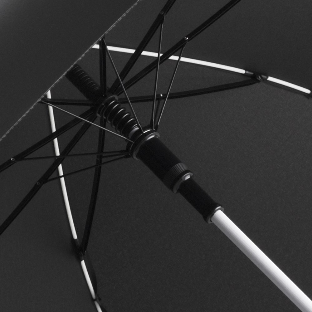 Schicker Automatik-Stockschirm mit farbigem Stock und farbigen Schienen Komfortable Automatik-Funktion zum schnellen Öffnen, Windproof-System für höhere Gestell-Flexibilität und bessere Windsicherheit, flexible Fiberglasschienen, stabiler Stahlstock mit farbiger Kunststoffummantelung, Polyester-Pongee Bezugsmaterial aus recycelten Kunststoffen, umweltfreundlich dank original waterSAVE® Bezugsmaterial, dezente Verzierung des Bezugs durch farbige Nähte, exklusiver Softgriff mit Werbeanbringungsmöglichkeit, Auslösetaste mit Werbeanbringungsmöglichkeit, mit waterSAVE® Label auf dem Schließband. Auch als Taschenschirm (Art. 5644) erhältlich.