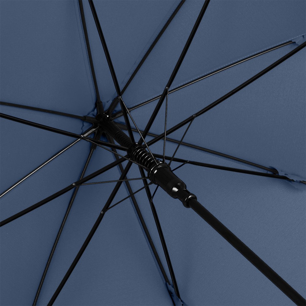 Preislich attraktiver Automatik-Stockschirm mit Windproof-System Komfortable Automatik-Funktion zum schnellen Öffnen, Windproof-System für höhere Gestell-Flexibilität und bessere Windsicherheit, flexible Fiberglasschienen, matt-schwarzer gerader Kunststoffgriff mit Werbeanbringungsmöglichkeit, höherer Korrosionsschutz durch schwarze Galvanisierung des Stahlstocks