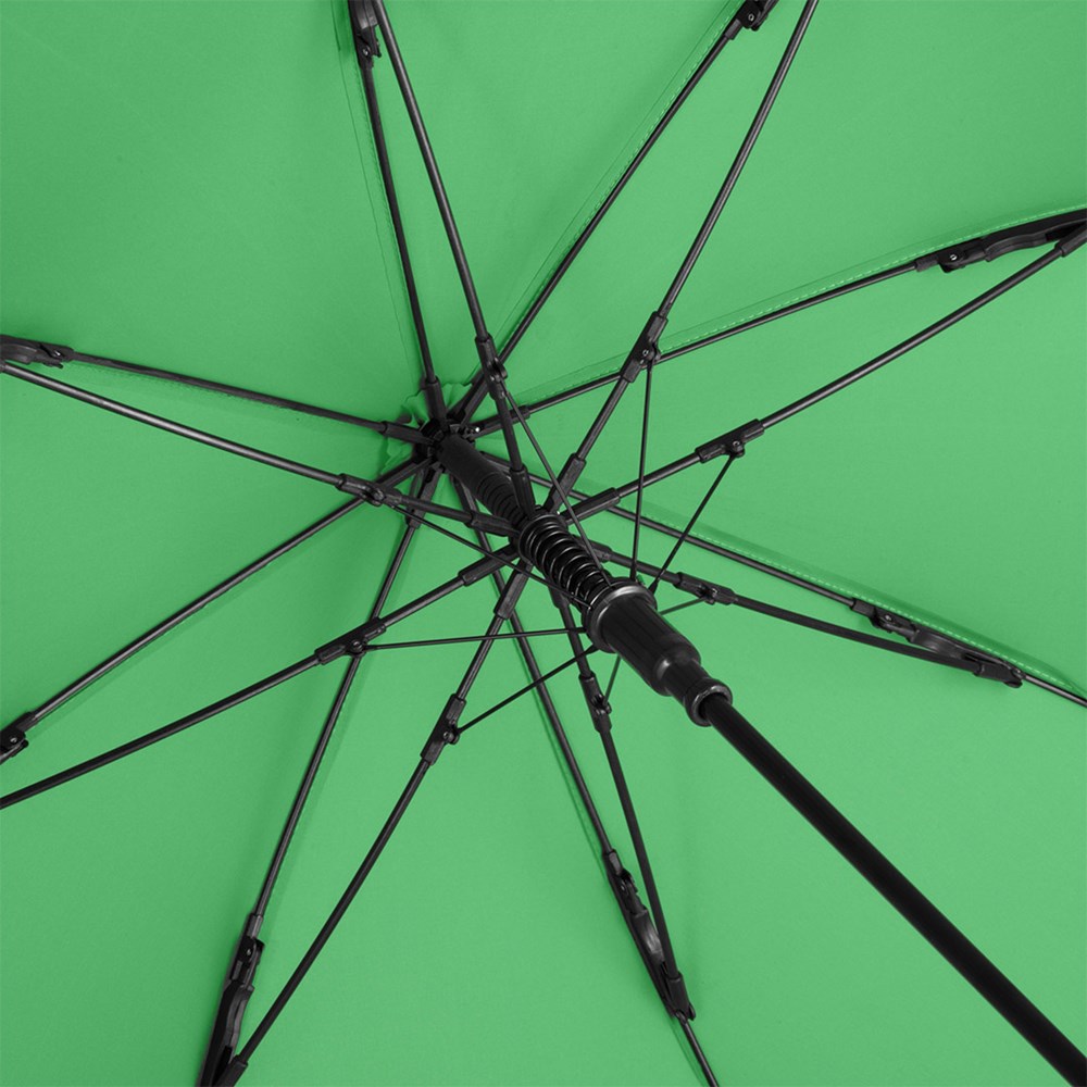 Preislich attraktiver Automatik-Stockschirm mit doppelter Werbeanbringungsmöglichkeit am Griff Komfortable Automatik-Funktion zum schnellen Öffnen, hochwertiges Windproof-PLUS-System für eine maximale Gestell-Flexibilität bei stärkeren Windböen, flexible Fiberglasschienen, gerader Griff mit doppelter Werbeanbringungsmöglichkeit, höherer Korrosionsschutz durch schwarze Galvanisierung des Stahlstocks
