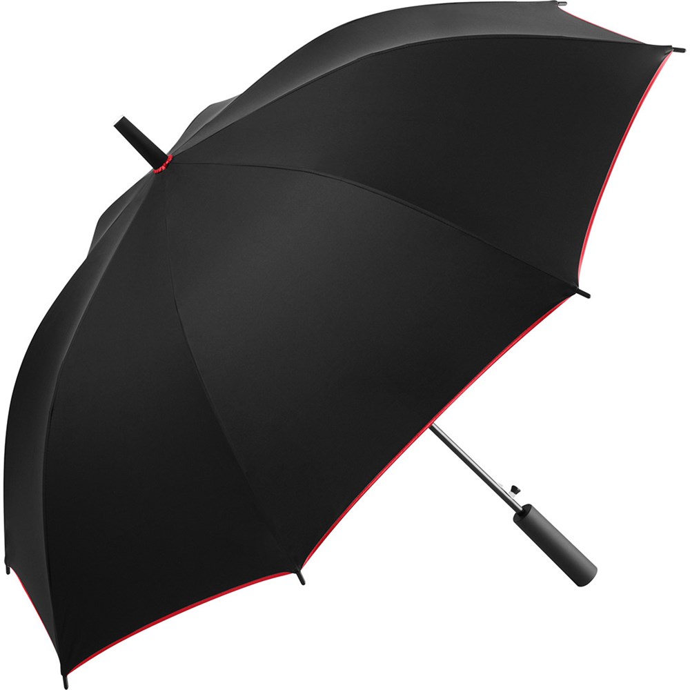 Attraktiver Stockschirm mit zweifarbigem Bezug Komfortable Automatik-Funktion zum schnellen Öffnen, Windproof-System für höhere Gestell-Flexibilität und bessere Windsicherheit, flexible Fiberglasschienen, harmonisch kombinierter zweifarbiger Bezug mit aufeinander abgestimmten Innen- und Außenfarben, Saum, Rosette und Schließband farblich auf Bezug-Innenfarbe angepasst, von innen beschichteter Bezug, gerader Soft-Touch-Griff mit doppelter Werbeanbringungsmöglichkeit, höherer Korrosionsschutz durch schwarze Galvanisierung des Stahlstocks. Auch als Taschenschirm (Art. 5529) erhältlich.