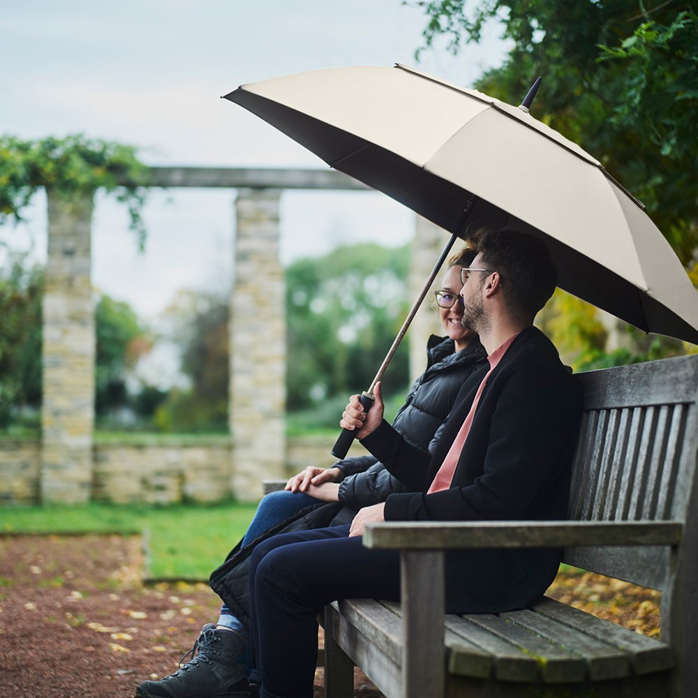 Exklusiver Automatik-Gästeschirm für zwei Personen mit Tropfenmotiv auf dem Fiberglasstock... mehr
