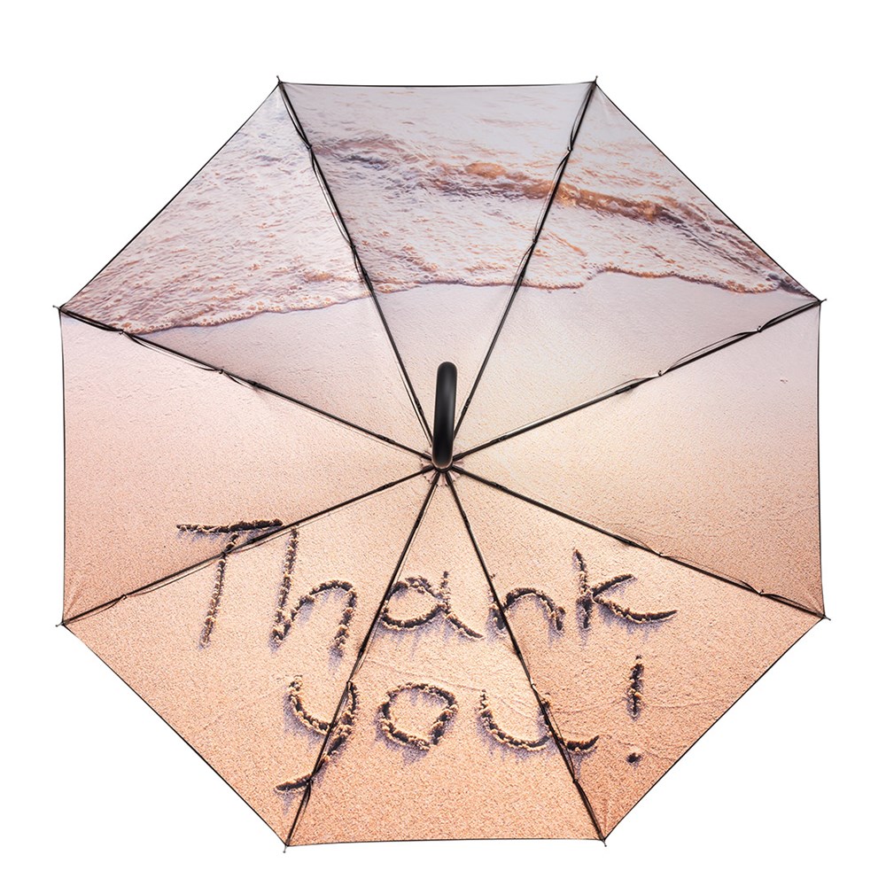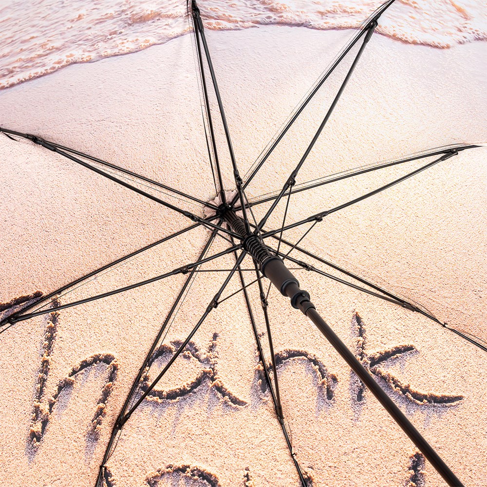 Neutraler Automatik-Stockschirm mit farbigem Motiv-Innendruck Komfortable Automatik-Funktion zum schnellen Öffnen, hochwertiges Windproof-PLUS-System für eine maximale Gestell-Flexibilität bei stärkeren Windböen, flexible Fiberglasschienen, von außen beschichteter Bezug mit Transferdruck innen, Soft-Touch-Rundhakengriff mit integrierter Auslösetaste und Werbeanbringungsmöglichkeit, höherer Korrosionsschutz durch schwarze Galvanisierung des Stahlstocks. Einige Farben auch als Taschenschirm (Art. 5593) erhältlich.