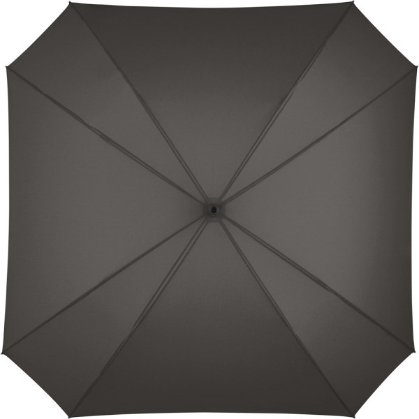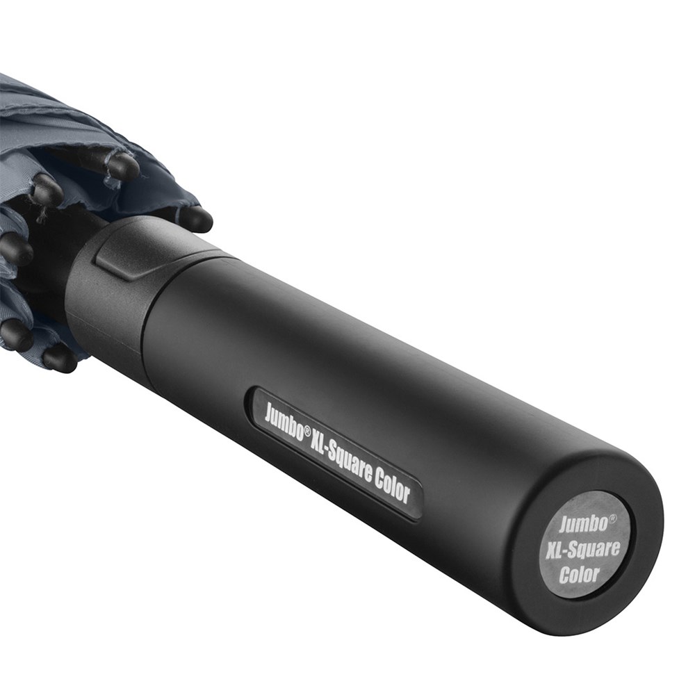 Quadratischer Gästeschirm für zwei Personen Komfortable Automatik-Funktion zum schnellen Öffnen, hochwertiges Windproof-PLUS-System für eine maximale Gestell-Flexibilität bei stärkeren Windböen, flexible Fiberglasschienen, farbige Ummantelung des Stahlstocks, gerader Soft-Touch-Griff mit integrierter Auslösetaste und doppelter Werbeanbringungsmöglichkeit, gastfreundlicher großer Durchmesser
