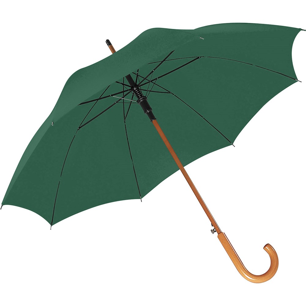 Automatik-Stockschirm mit Echtholzstock und Echtholzgriff Komfortable Automatik-Funktion zum schnellen Öffnen, Windproof-System für höhere Gestell-Flexibilität und bessere Windsicherheit, flexible Fiberglasschienen, massiver Echtholzstock, Rundhakengriff und Top aus Echtholz