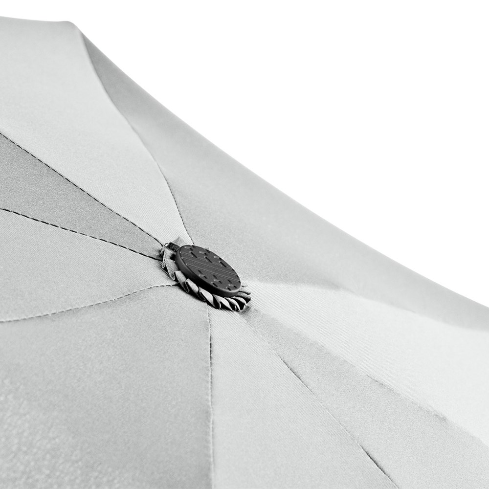 Exklusiver Doppelautomatik-Taschenschirm mit Reifenprofil-Design-Elementen Komfortable Automatik-Funktion zum schnellen Öffnen und Schließen, hochwertiges Windproof-PLUS-System für eine maximale Gestell-Flexibilität bei stärkeren Windböen, stabile Fiberglasschienen mit grauen Gelenken, handsympathischer Soft-Feel-Griff mit integrierter Auslösetaste und Werbeanbringungsmöglichkeit, komfortables Futteral mit Druckknopf. Auch als Golf-/Gästeschirm (Art. 7355) erhältlich.