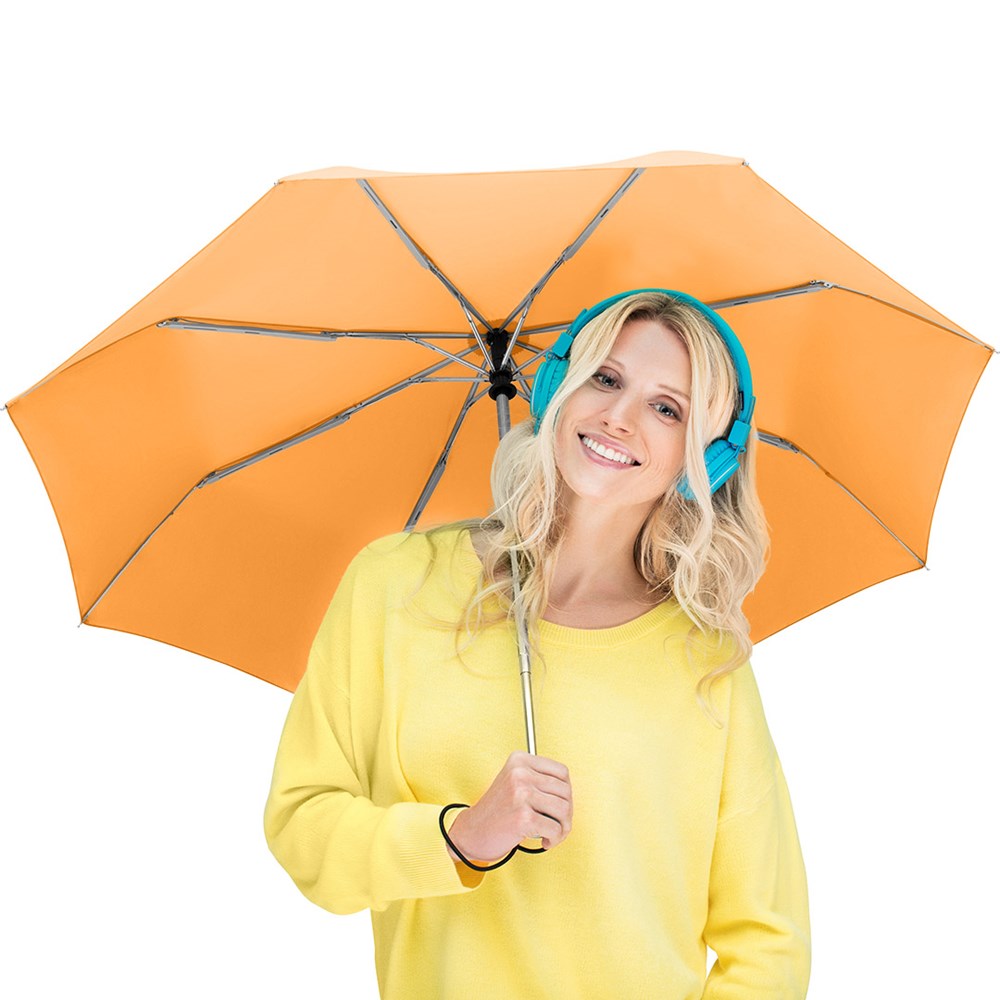 Trendiger Doppelautomatik-Taschenschirm in durchgehend einheitlicher Farbgebung Komfortable Doppelautomatik-Funktion zum schnellen Öffnen und Schließen, hochwertiges Windproof-PLUS-System für eine maximale Gestell-Flexibilität bei stärkeren Windböen, einige Farben auch mit waterSAVE® Bezugsmaterial erhältlich - diese dann mit waterSAVE® Label auf dem Schließband, verchromter Stahlstock, Soft-Touch-Griff in Bezugsfarbe mit silberner Auslösetaste, elastischer Tragekordel und Werbeanbringungsmöglichkeit, Futteral mit schwarzer Paspelierung. Auch als weiterer Taschenschirm (Art. 5565), als Stockschirm (Art. 7560) und als Gästeschirm (Art. 7580) erhältlich.