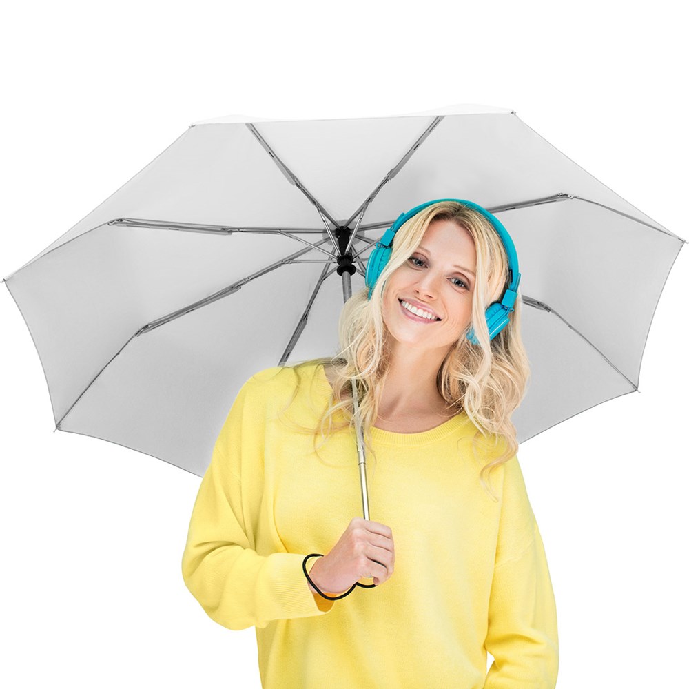 Trendiger Doppelautomatik-Taschenschirm in durchgehend einheitlicher Farbgebung Komfortable Doppelautomatik-Funktion zum schnellen Öffnen und Schließen, hochwertiges Windproof-PLUS-System für eine maximale Gestell-Flexibilität bei stärkeren Windböen, einige Farben auch mit waterSAVE® Bezugsmaterial erhältlich - diese dann mit waterSAVE® Label auf dem Schließband, verchromter Stahlstock, Soft-Touch-Griff in Bezugsfarbe mit silberner Auslösetaste, elastischer Tragekordel und Werbeanbringungsmöglichkeit, Futteral mit schwarzer Paspelierung. Auch als weiterer Taschenschirm (Art. 5565), als Stockschirm (Art. 7560) und als Gästeschirm (Art. 7580) erhältlich.