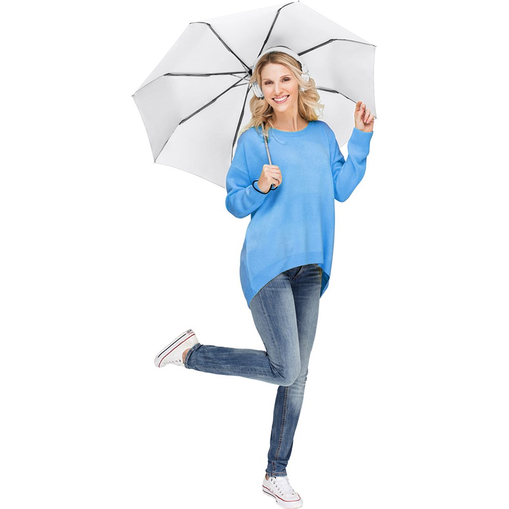 Trendiger Doppelautomatik-Taschenschirm in durchgehend einheitlicher Farbgebung Komfortable Doppelautomatik-Funktion zum schnellen Öffnen und Schließen, hochwertiges Windproof-PLUS-System für eine maximale Gestell-Flexibilität bei stärkeren Windböen, einige Farben auch mit waterSAVE® Bezugsmaterial erhältlich - diese dann mit waterSAVE® Label auf dem Schließband, verchromter Stahlstock, Soft-Touch-Griff in Bezugsfarbe mit silberner Auslösetaste, elastischer Tragekordel und Werbeanbringungsmöglichkeit, Futteral mit schwarzer Paspelierung. Auch als weiterer Taschenschirm (Art. 5565), als Stockschirm (Art. 7560) und als Gästeschirm (Art. 7580) erhältlich.