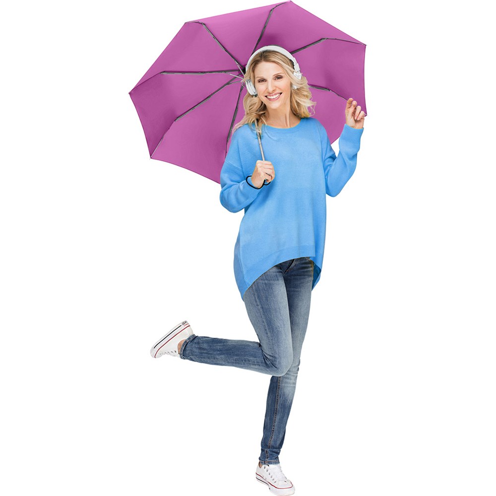 Trendiger Doppelautomatik-Taschenschirm in durchgehend einheitlicher Farbgebung Komfortable Doppelautomatik-Funktion zum schnellen Öffnen und Schließen, hochwertiges Windproof-PLUS-System für eine maximale Gestell-Flexibilität bei stärkeren Windböen, einige Farben auch mit waterSAVE® Bezugsmaterial erhältlich - diese dann mit waterSAVE® Label auf dem Schließband, verchromter Stahlstock, Soft-Touch-Griff in Bezugsfarbe mit silberner Auslösetaste, elastischer Tragekordel und Werbeanbringungsmöglichkeit, Futteral mit schwarzer Paspelierung. Auch als weiterer Taschenschirm (Art. 5565), als Stockschirm (Art. 7560) und als Gästeschirm (Art. 7580) erhältlich.