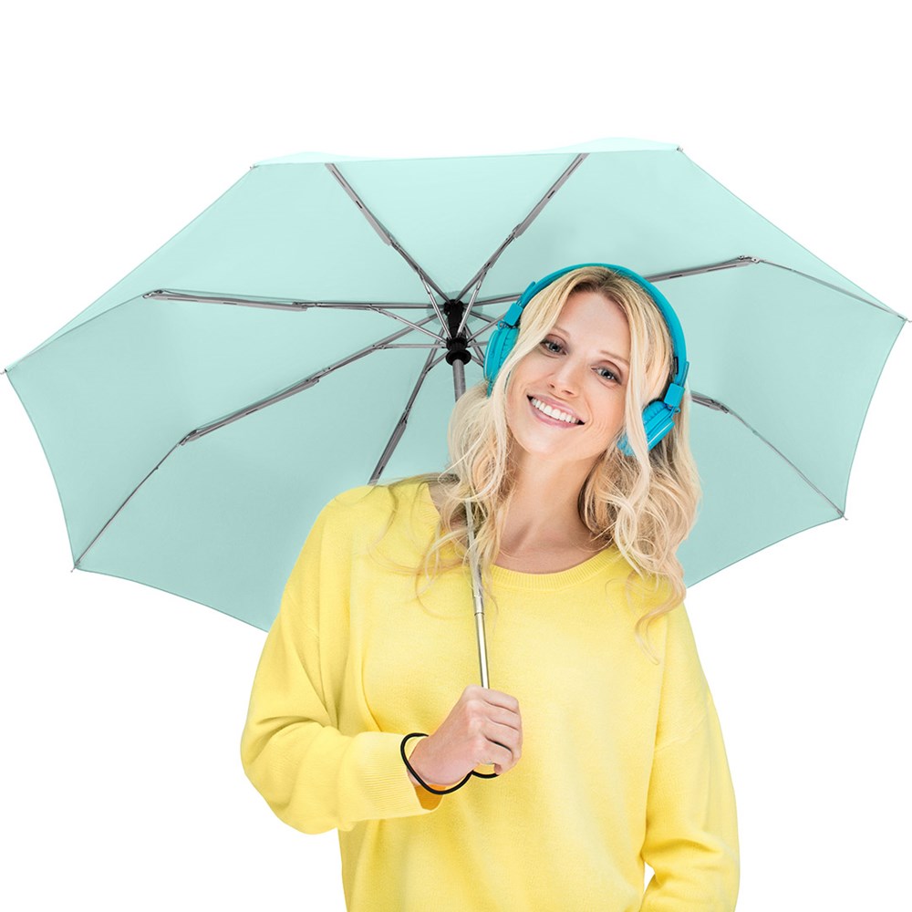 Trendiger Doppelautomatik-Taschenschirm in durchgehend einheitlicher Farbgebung Komfortable Doppelautomatik-Funktion zum schnellen Öffnen und Schließen, hochwertiges Windproof-PLUS-System für eine maximale Gestell-Flexibilität bei stärkeren Windböen, einige Farben auch mit waterSAVE® Bezugsmaterial erhältlich - diese dann mit waterSAVE® Label auf dem Schließband, verchromter Stahlstock, Soft-Touch-Griff in Bezugsfarbe mit silberner Auslösetaste, elastischer Tragekordel und Werbeanbringungsmöglichkeit, Futteral mit schwarzer Paspelierung. Auch als weiterer Taschenschirm (Art. 5565), als Stockschirm (Art. 7560) und als Gästeschirm (Art. 7580) erhältlich.