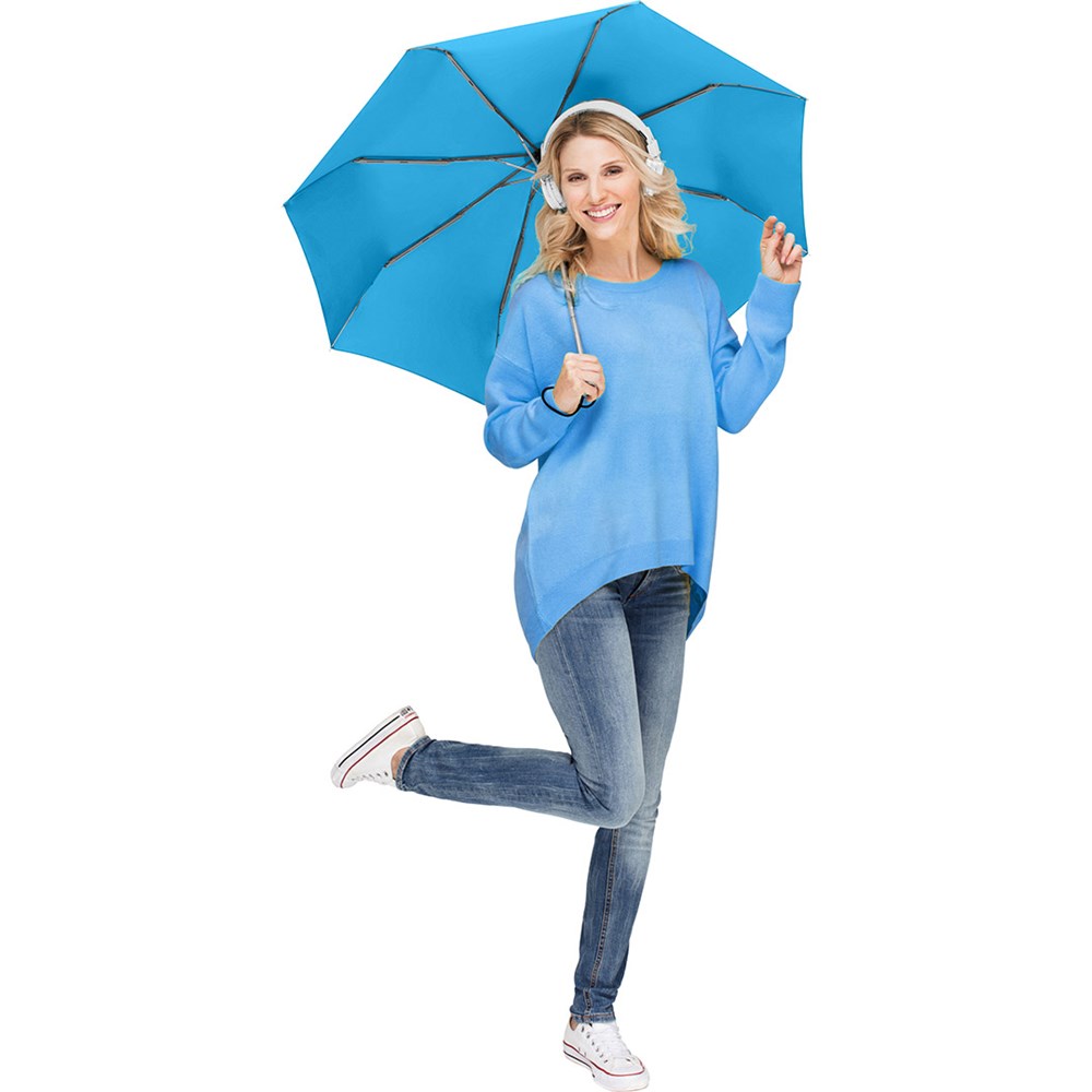 Trendiger Doppelautomatik-Taschenschirm in durchgehend einheitlicher Farbgebung Komfortable Doppelautomatik-Funktion zum schnellen Öffnen und Schließen, hochwertiges Windproof-PLUS-System für eine maximale Gestell-Flexibilität bei stärkeren Windböen, einige Farben auch mit waterSAVE® Bezugsmaterial erhältlich - diese dann mit waterSAVE® Label auf dem Schließband, verchromter Stahlstock, Soft-Touch-Griff in Bezugsfarbe mit silberner Auslösetaste, elastischer Tragekordel und Werbeanbringungsmöglichkeit, Futteral mit schwarzer Paspelierung. Auch als weiterer Taschenschirm (Art. 5565), als Stockschirm (Art. 7560) und als Gästeschirm (Art. 7580) erhältlich.