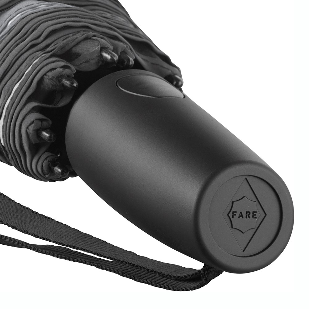 Trendiger Doppelautomatik-Taschenschirm mit modisch reflektierender Außenbeschichtung auf zwei Segmenten Komfortable Doppelautomatik-Funktion zum schnellen Öffnen und Schließen, hochwertiges Windproof-PLUS-System für eine maximale Gestell-Flexibilität bei stärkeren Windböen, zwei Segmente und modische Paspelierung mit farblich zum Bezug passender und modisch reflektierender Beschichtung, Soft-Feel-Griff mit integrierter Auslösetaste und Werbeanbringungsmöglichkeit, Futteral mit modischer Reflexpaspel. Auch als Gästeschirm (Art. 7377) erhältlich.