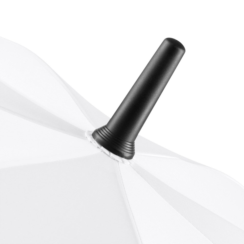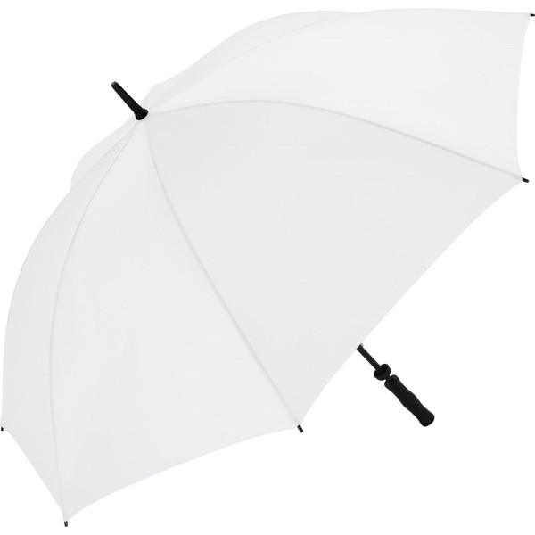 Stabiler Handöffner-Gästeschirm für zwei Personen Hochwertiges Windproof-PLUS-System für eine maximale Gestell-Flexibilität bei stärkeren Windböen, flexible Fiberglasschienen, stabiler Fiberglasstock, gerader Griff mit Werbeanbringungsmöglichkeit, Kunststoff-Glocke, gastfreundlicher großer Durchmesser