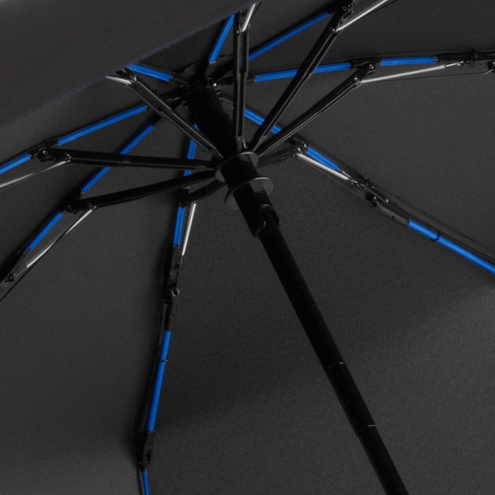 Stylischer Doppelautomatik-Taschenschirm mit farbigen Elementen Komfortable Doppelautomatik-Funktion zum schnellen Öffnen und Schließen, hochwertiges Windproof-PLUS-System für eine maximale Gestell-Flexibilität bei stärkeren Windböen, flexible Fiberglasschienen, Polyester-Pongee Bezugsmaterial aus recycelten Kunststoffen, umweltfreundlich dank original waterSAVE Bezugsmaterial, mit waterSAVE®-Label auf dem Schließband, ansprechendes Design durch farbige Schienen, Griffringe und Nähte, handsympathischer Soft-Feel-Griff mit integrierter Auslösetaste und Werbeanbringungsmöglichkeit, komfortables Futteral mit farbigen Nähten und Tragegurten. Auch als Taschenschirm (Art. 5084, 5584), Midsize-Schirm (Art. 4784) und Gästeschirm (Art. 2384) erhältlich.