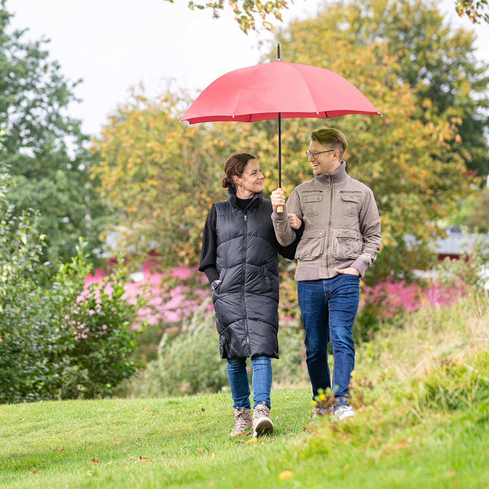 Preislich attraktiver nachhaltiger Gästeschirm mit Bezug aus recycelten Kunststoffen und Echtholzelementen Komfortable Automatik-Funktion zum schnellen Öffnen, hochwertiges Windproof-PLUS-System für eine maximale Gestell-Flexibilität bei stärkeren Windböen, flexible Fiberglasschienen, wassersparend gefärbtes Polyester-Pongee waterSAVE® Bezugsmaterial aus recycelten Kunststoffen, mit waterSAVE®-Label auf dem Schließband, Echtholzspitzen, gerader Echtholzgriff mit Werbeanbringungsmöglichkeit, höherer Korrosionsschutz durch schwarze Galvanisierung des Stahlstocks