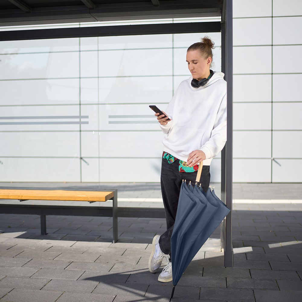 Material: Bezug: 100% Polyester-Pongee (recycelt & waterSAVE®) Griff: Echtholz Stock: Stahl