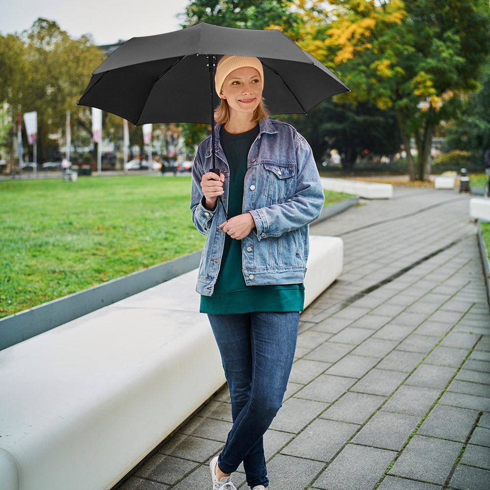 Preislich attraktiver Automatik-Taschenschirm mit Windproof-PLUS-System Komfortable Automatik-Funktion zum schnellen Öffnen, hochwertiges Windproof-PLUS-System für eine maximale Gestell-Flexibilität bei stärkeren Windböen, handsympathischer Soft-Feel-Griff mit integrierter Auslösetaste, elastischer Tragekordel und Werbeanbringungsmöglichkeit