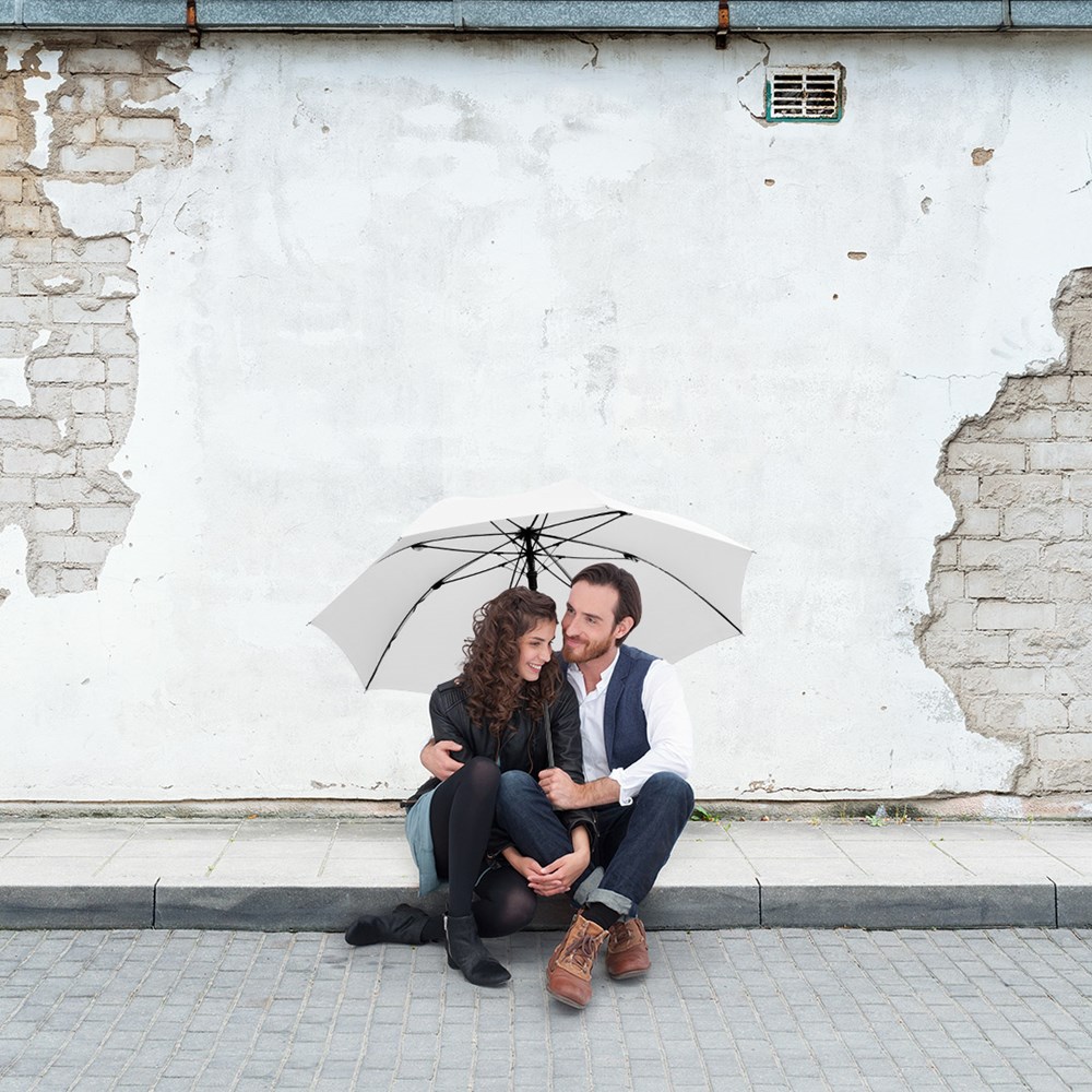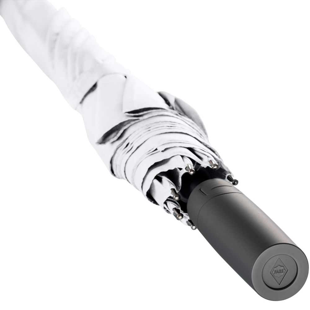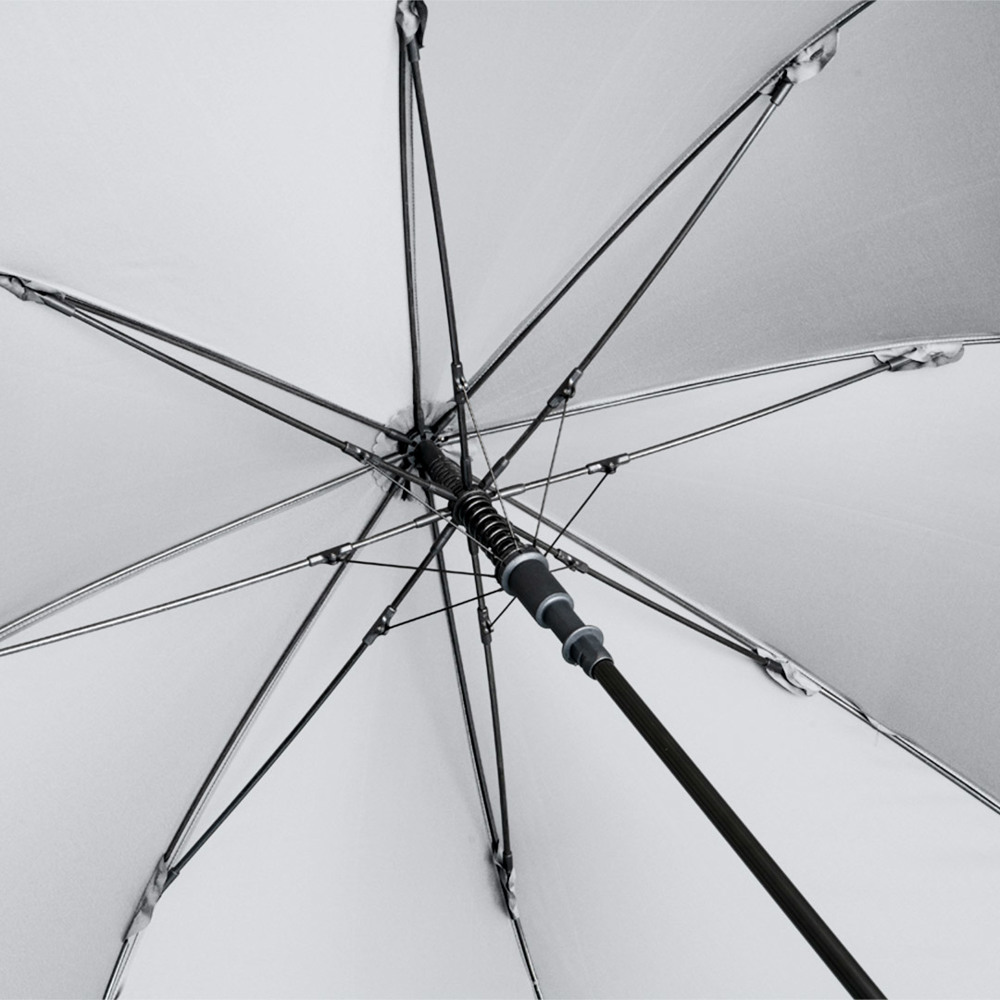 Preislich attraktiver Automatik-Gästeschirm mit Windproof-PLUS-System Komfortable Automatik-Funktion zum schnellen Öffnen, hochwertiges Windproof-PLUS-System für eine maximale Gestell-Flexibilität bei stärkeren Windböen, flexible Fiberglasschienen, höherer Korrosionsschutz durch schwarze Galvanisierung des Stahlstocks, handsympathischer Soft-Feel-Griff mit integrierter Auslösetaste und Werbeanbringungsmöglichkeit