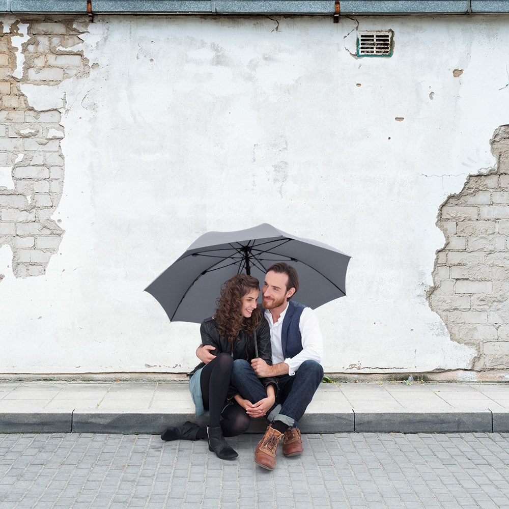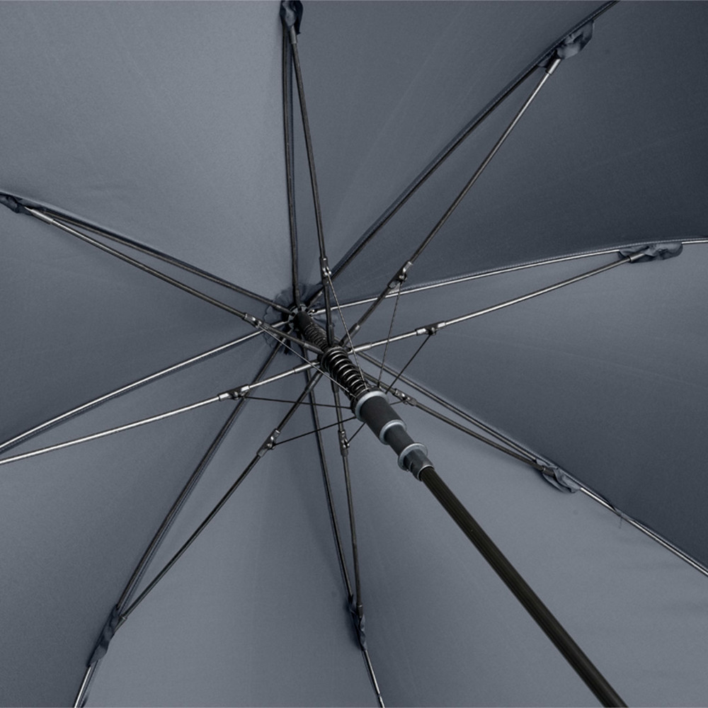 Preislich attraktiver Automatik-Gästeschirm mit Windproof-PLUS-System Komfortable Automatik-Funktion zum schnellen Öffnen, hochwertiges Windproof-PLUS-System für eine maximale Gestell-Flexibilität bei stärkeren Windböen, flexible Fiberglasschienen, höherer Korrosionsschutz durch schwarze Galvanisierung des Stahlstocks, handsympathischer Soft-Feel-Griff mit integrierter Auslösetaste und Werbeanbringungsmöglichkeit