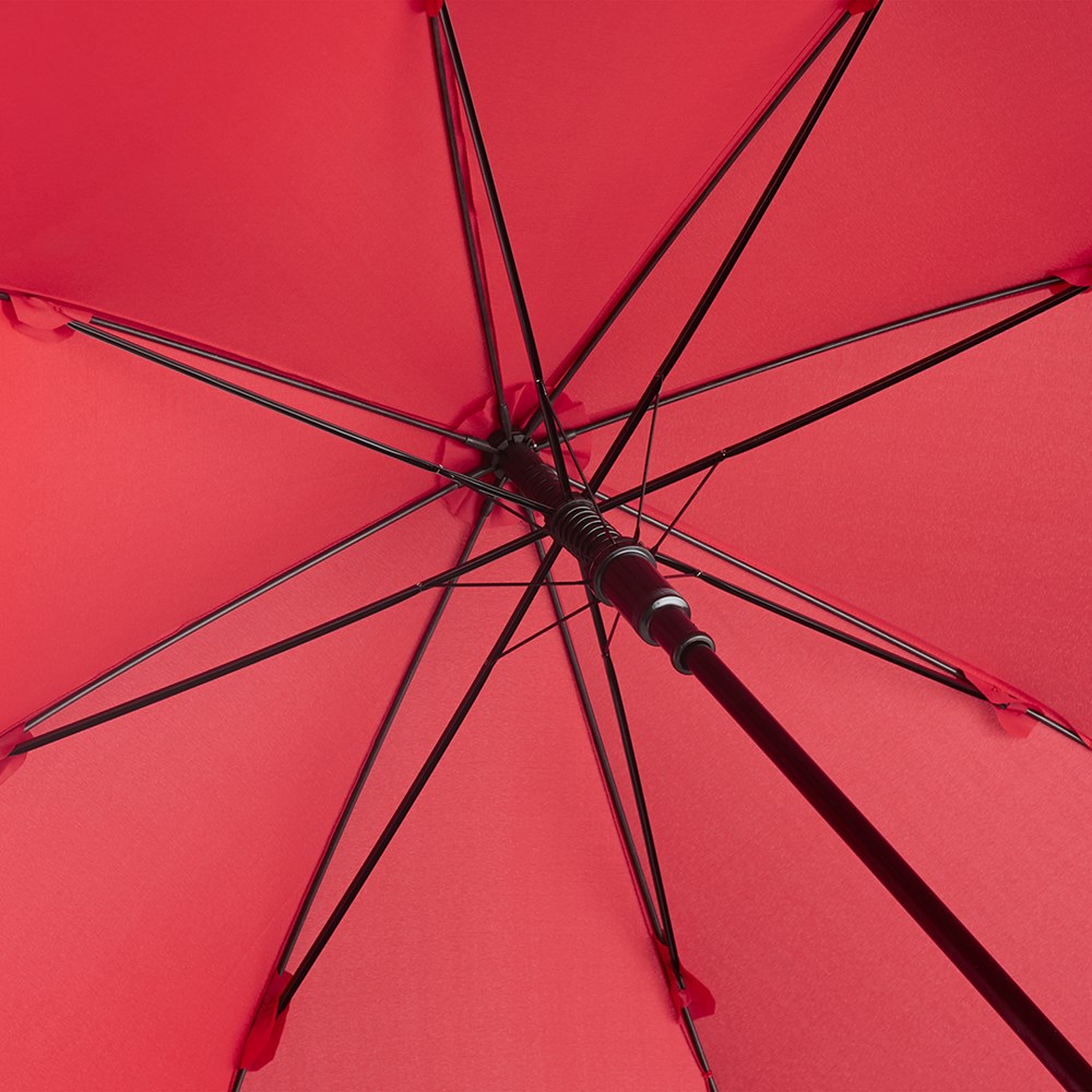 Preislich attraktiver Gästeschirm für zwei Personen mit Windproof-System Komfortable Automatik-Funktion zum schnellen Öffnen, Windproof-System für höhere Gestell-Flexibilität und bessere Windsicherheit, flexible Fiberglasschienen, matt-schwarzer Kunststoff Rundhakengriff, höherer Korrosionsschutz durch schwarze Galvanisierung des Stahlstocks. Auch als Stockschirm (Art. 1104) erhältlich.