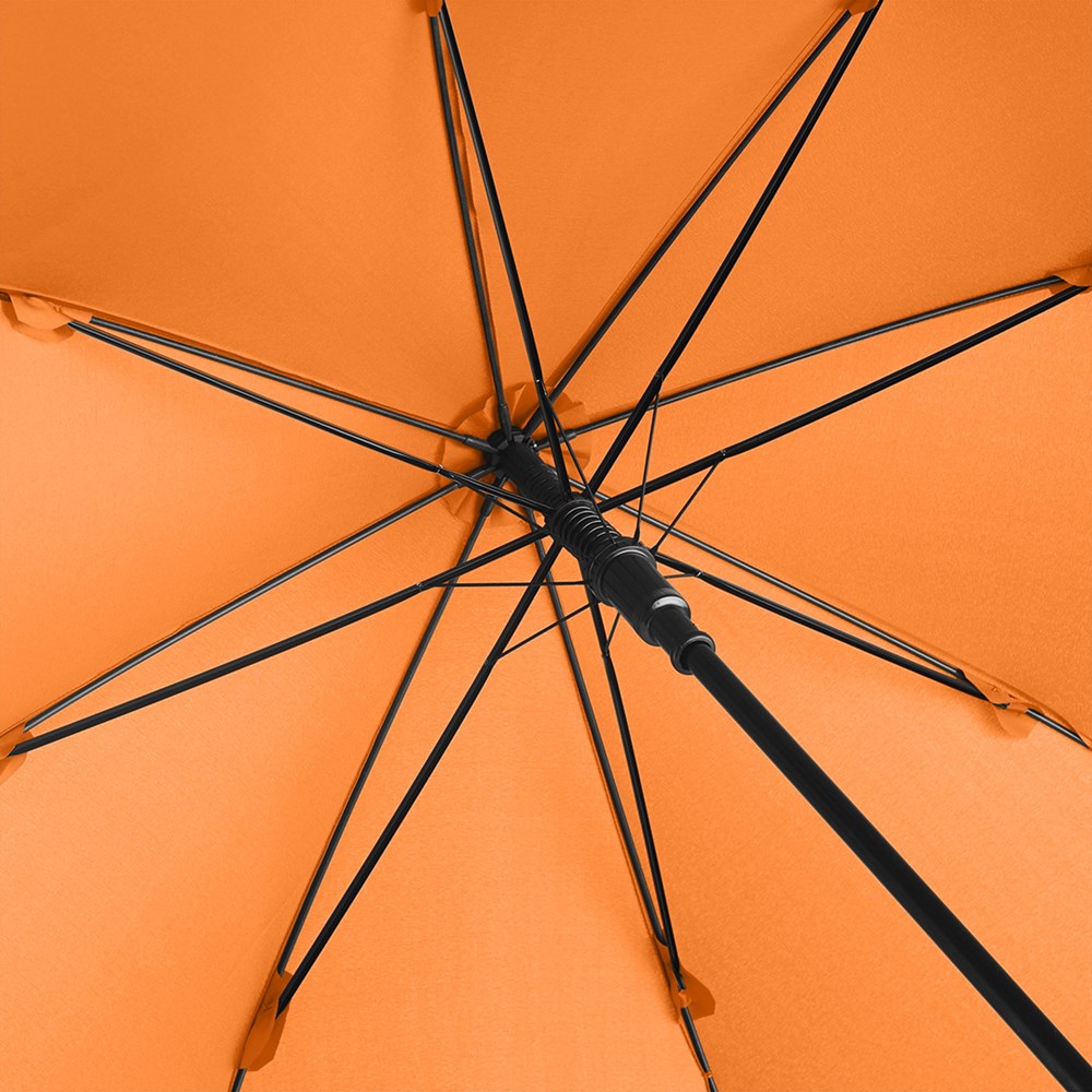 Preislich attraktiver Gästeschirm für zwei Personen mit Windproof-System Komfortable Automatik-Funktion zum schnellen Öffnen, Windproof-System für höhere Gestell-Flexibilität und bessere Windsicherheit, flexible Fiberglasschienen, matt-schwarzer Kunststoff Rundhakengriff, höherer Korrosionsschutz durch schwarze Galvanisierung des Stahlstocks. Auch als Stockschirm (Art. 1104) erhältlich.