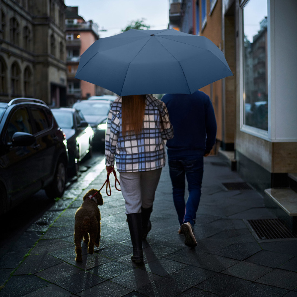 Preislich attraktiver Doppelautomatik-Taschenschirm in Übergröße mit Windproof-PLUS-System Komfortable Doppelautomatik-Funktion zum schnellen Öffnen und Schließen des Schirms, hochwertiges Windproof-PLUS-System für eine maximale Gestell-Flexibilität bei stärkeren Windböen, handsympathischer Soft-Feel-Griff mit integrierter Auslösetaste, elastischer Tragekordel und Werbeanbringungsmöglichkeit