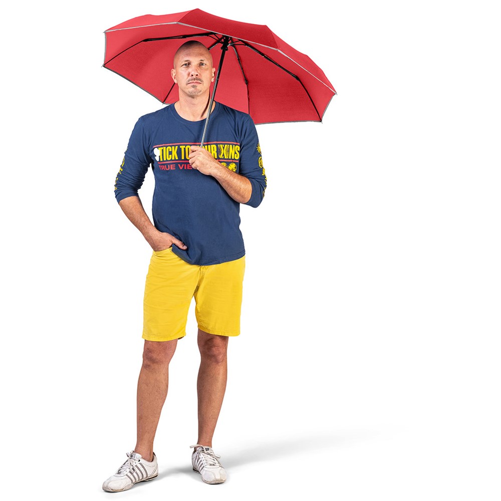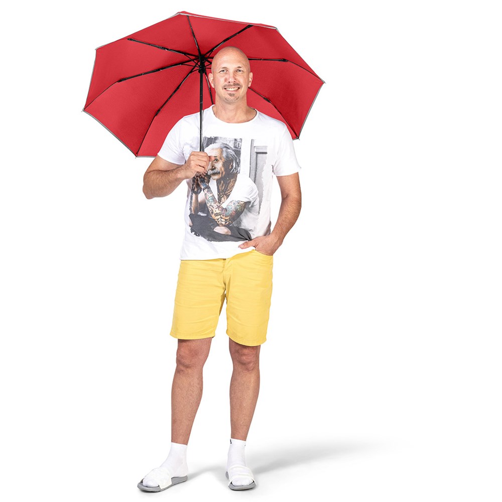Markanter Doppelautomatik-Taschenschirm in Übergröße mit modisch reflektierender Paspelierung... mehr